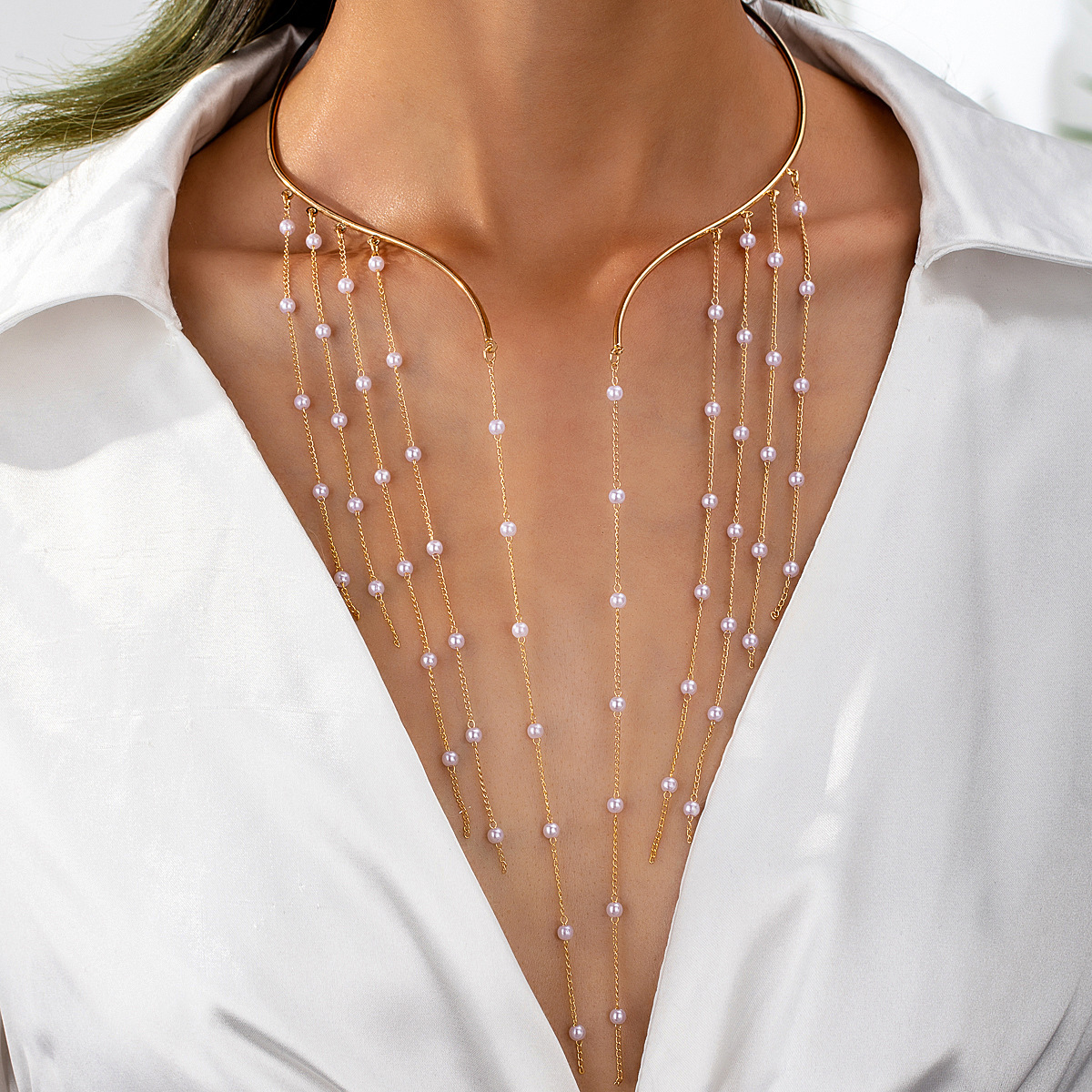 クロスボーダー起爆ロングフリンジネックレス模造真珠ネックレス首輪ペンダントレディース結婚式花嫁ネックレスクラシックネックレス