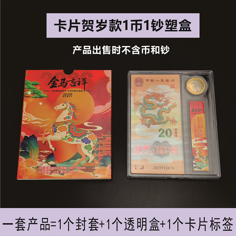 2026年贺岁版塑盒卡片款透明盒马年1币1钞礼盒马钞收藏盒展示盒