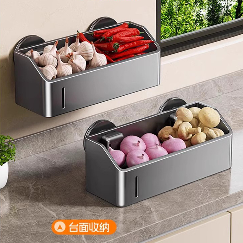 厨房吸盘置物架多功能免打孔葱姜蒜收纳筐壁挂调料品收纳盒放置