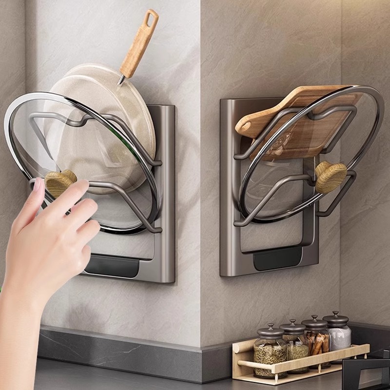 台所の鍋の蓋の棚の物置棚の壁掛け式のまな板の収納棚のまな板の鍋の棚の置く器は穴を開けないで多機能です。