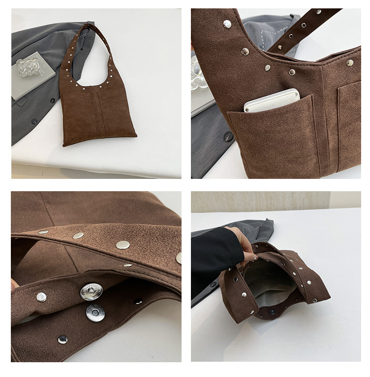 国境を越えたリベットのベルベットの腋の下のバッグins潮欧米の通勤は対外貿易bagsレトロなシングルバッグをつなぎ合わせた