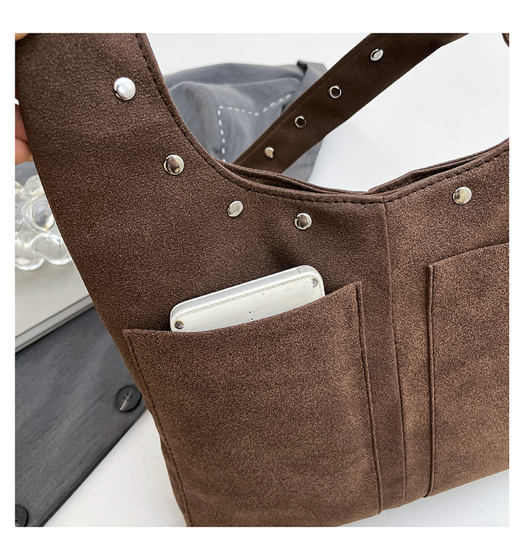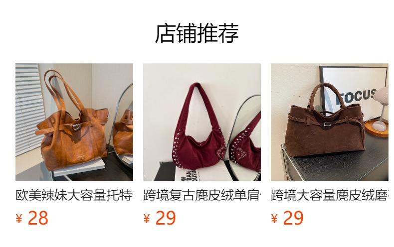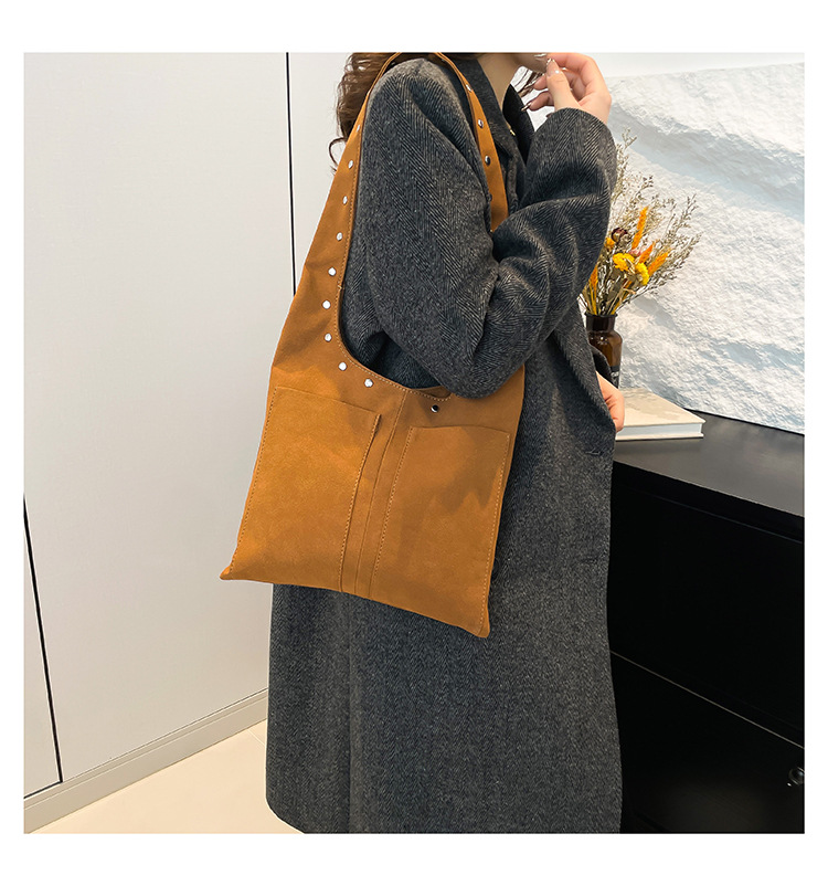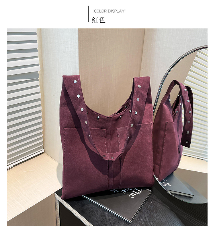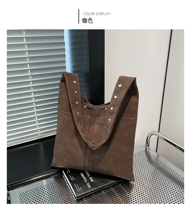 クロスボーダー大容量スエードつや消しハンドバッグ r.ow レトロトートデザイン気質ハイエンドショルダーバッグ