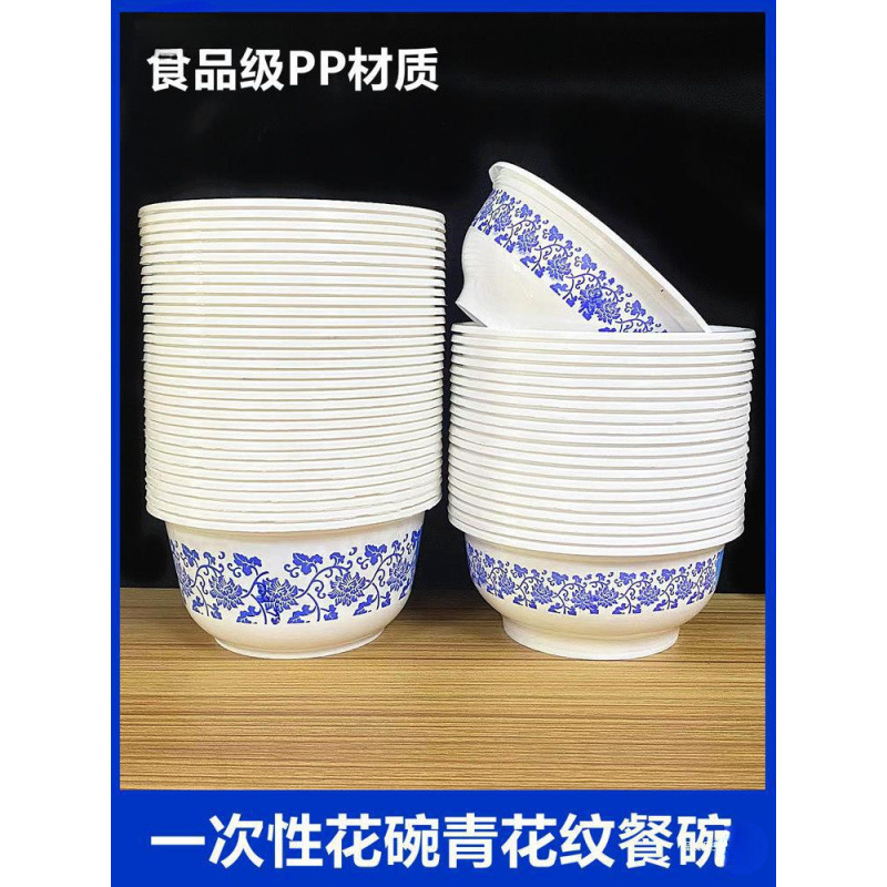 一次性青花瓷碗外卖碗流水席专用碗打包碗加厚家用碗食品级外卖碗