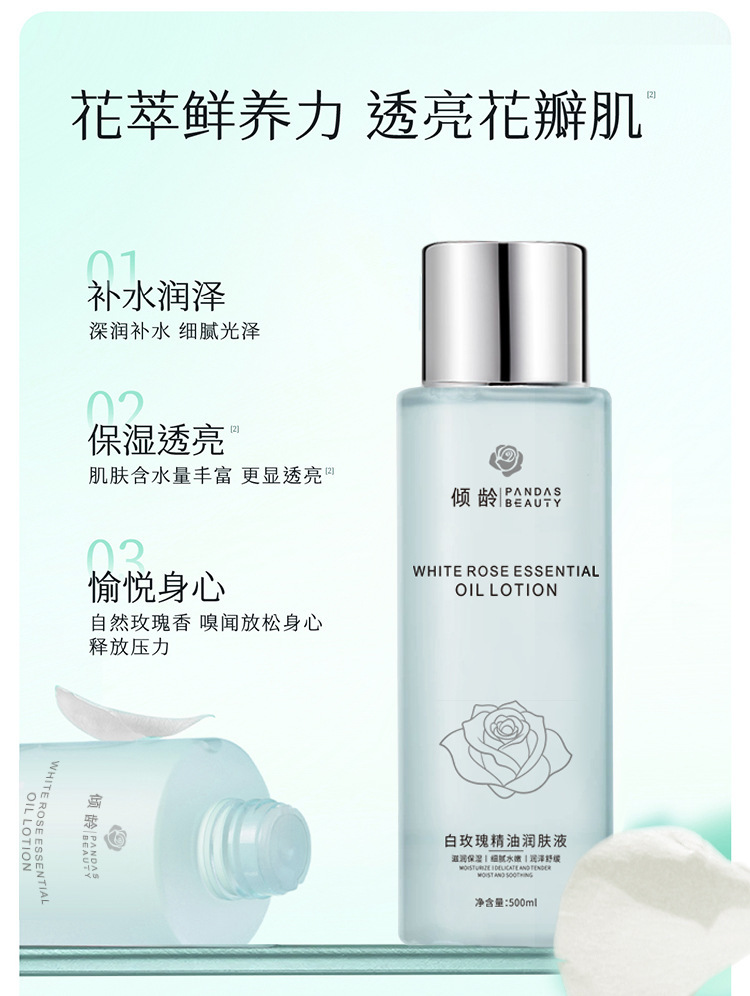 倾龄白玫瑰精油润肤液保湿透亮改善暗沉提亮舒缓滋润