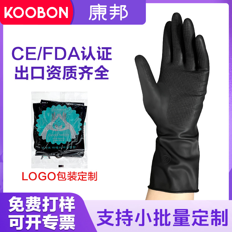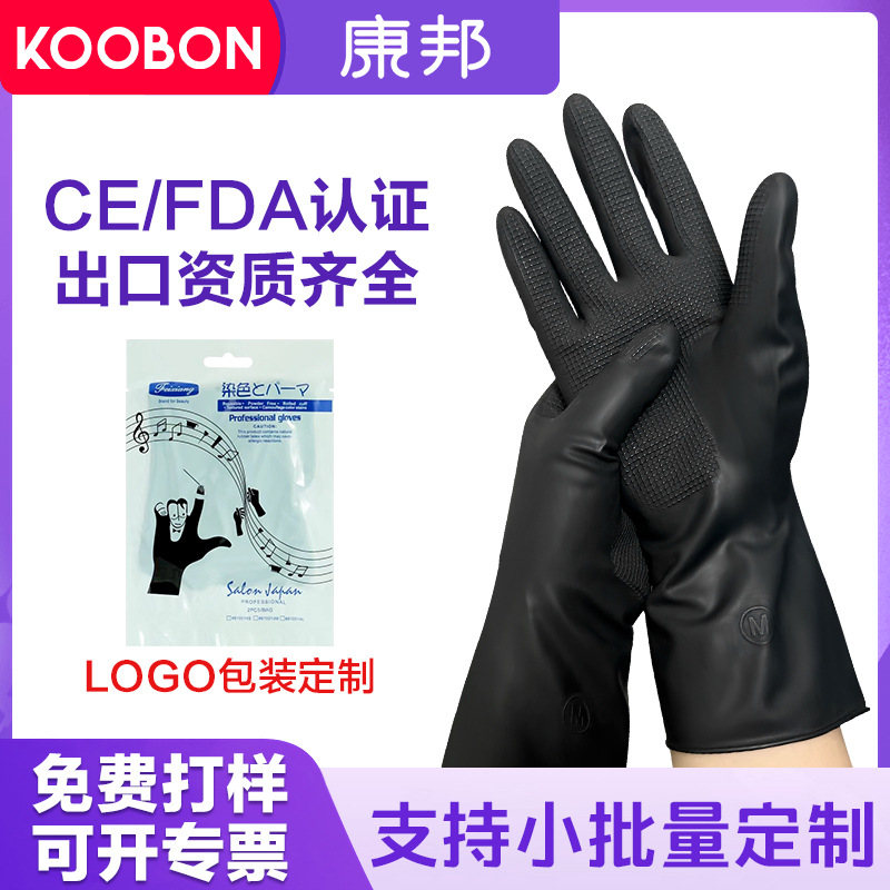 康邦厚手ヘアサロン専用高級黒色ラテックス韓国ゴム手袋染毛パーマ耐久性独立包装