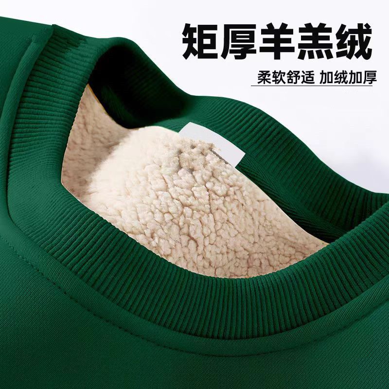男士秋冬经典纯色加绒加厚卫衣男羊羔绒圆领宽松保暖内外搭卫衣