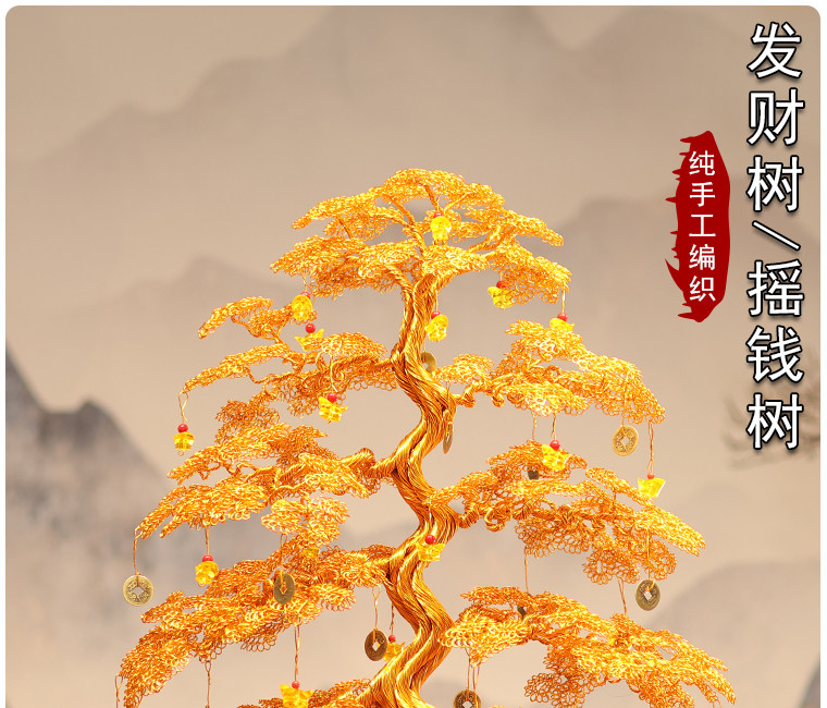 金持ちになる木の純手編みの金の木の工芸品の家の装飾は新居の開業の贈り物に引っ越します。