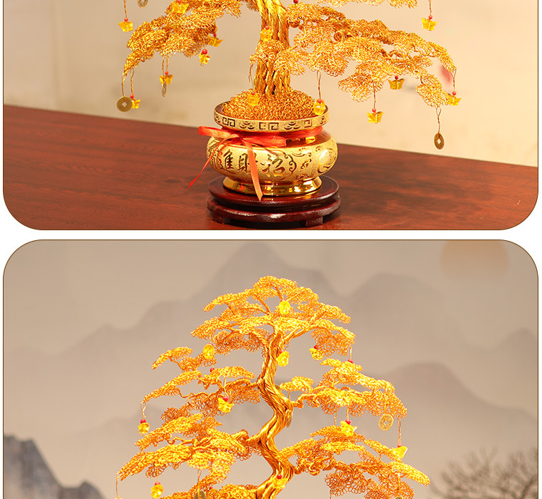 黄水晶発財樹招財置物家庭用キャビネット装飾品テレビキャビネット小元宝金振り木開業プレゼント