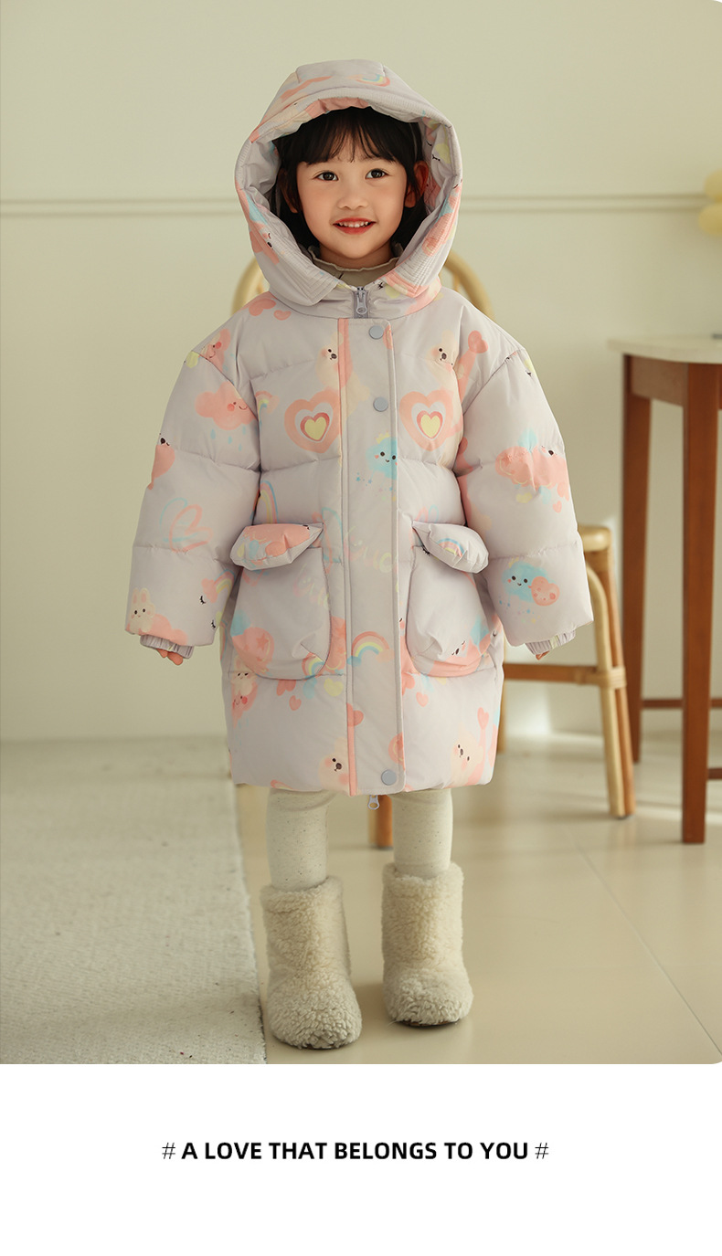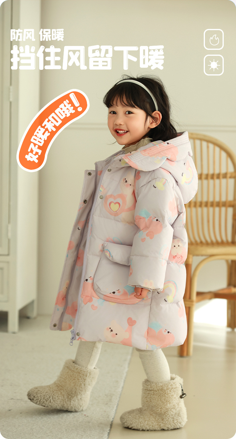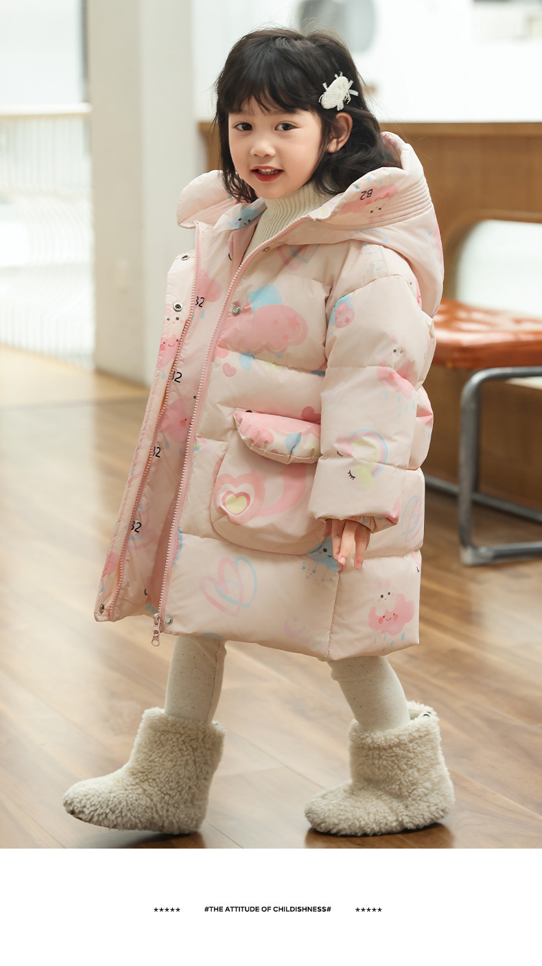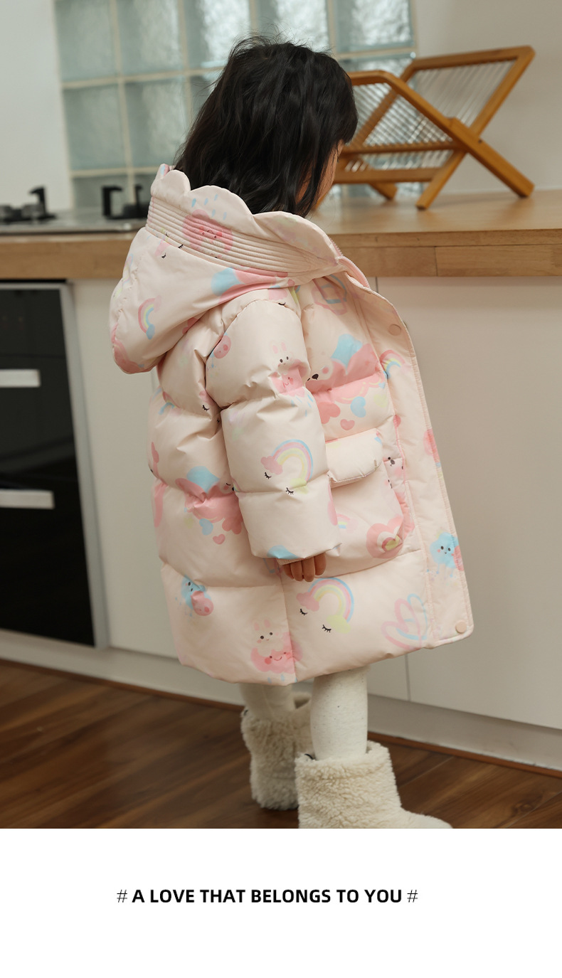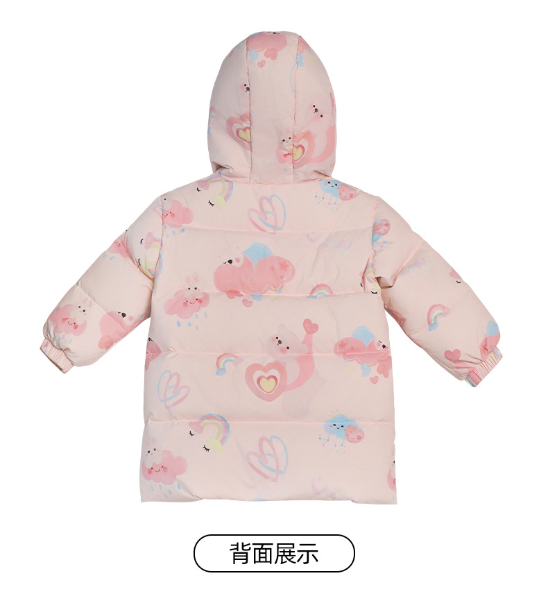 ABC中小童女童羽绒服中长款儿童女宝宝卡通可爱免洗加厚公主外套