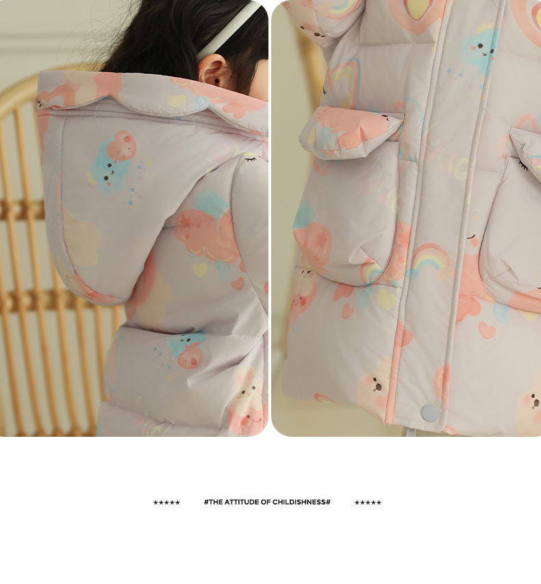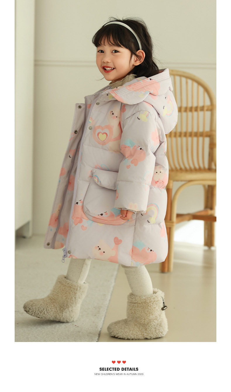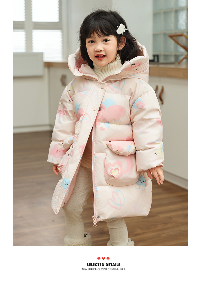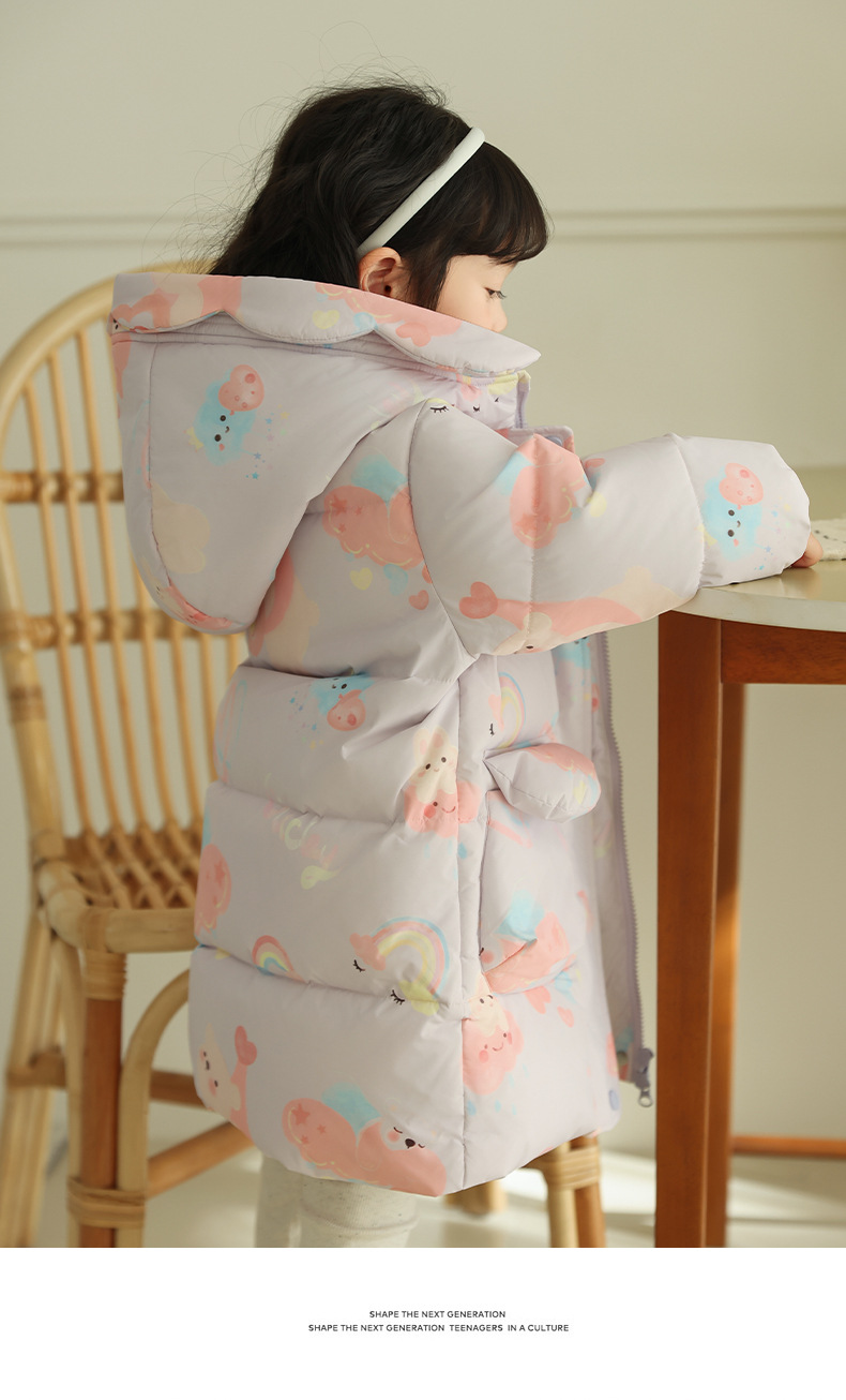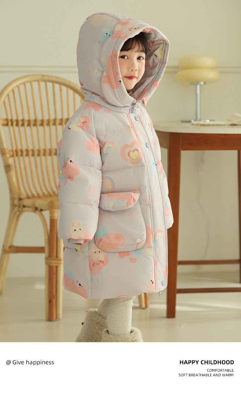 ABC中小童女童羽绒服中长款儿童女宝宝卡通可爱免洗加厚公主外套