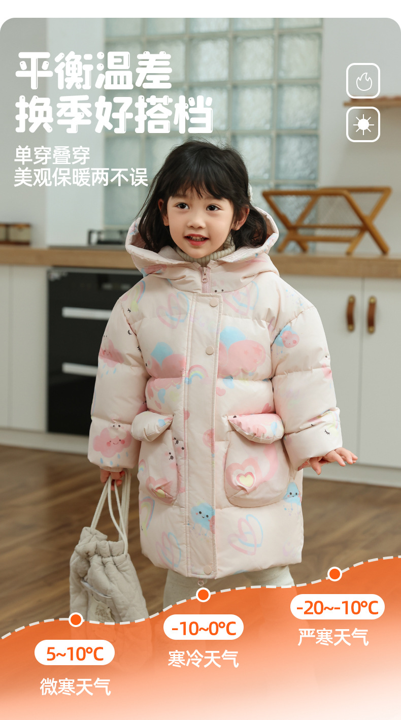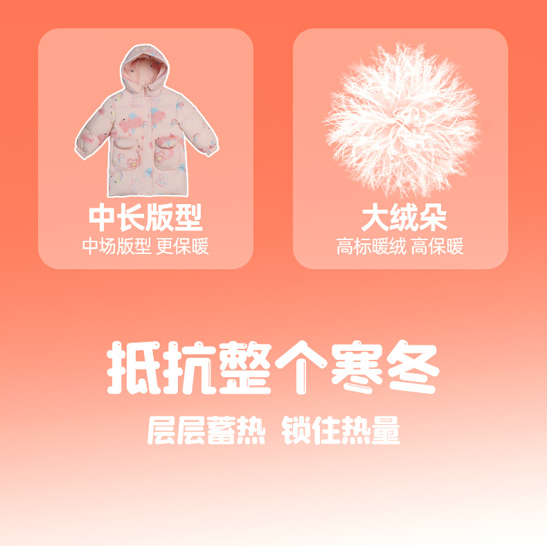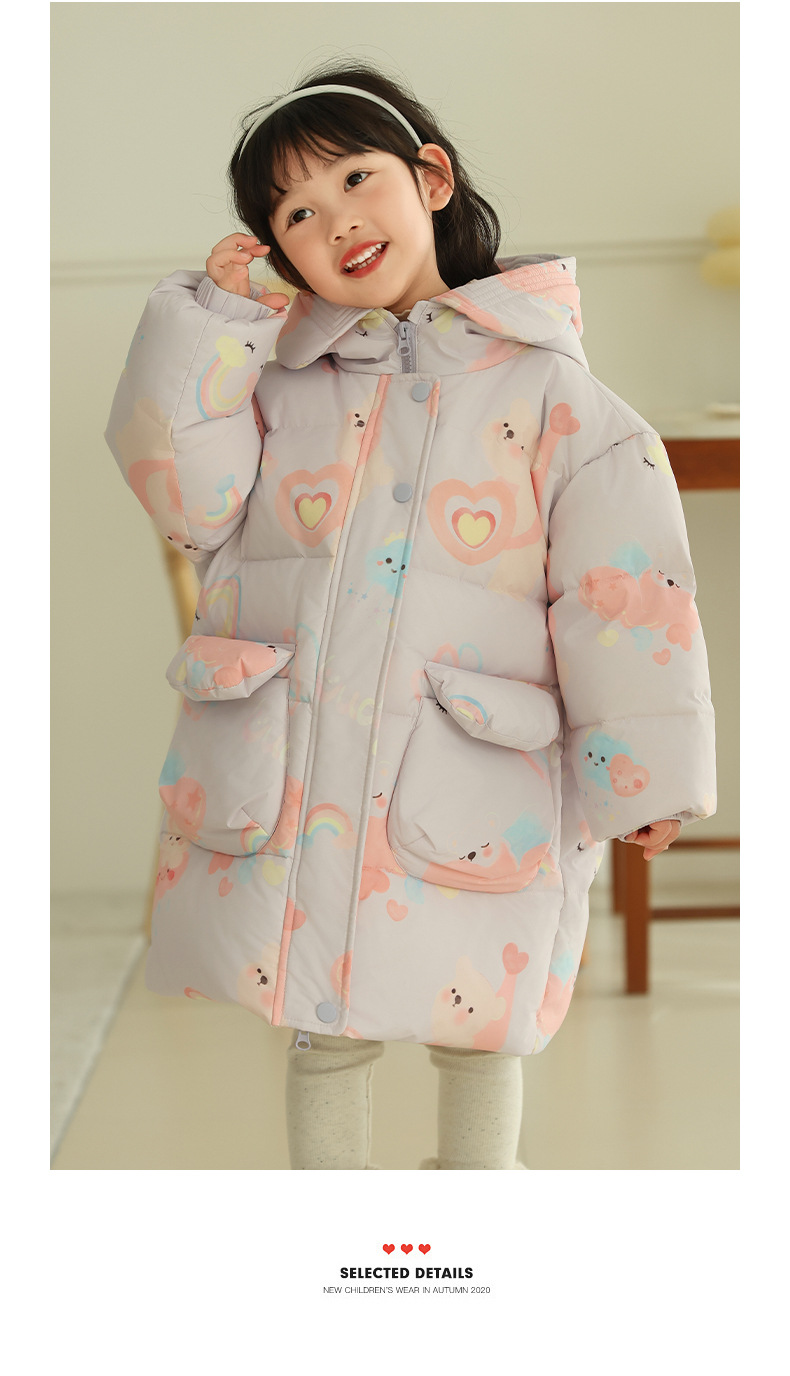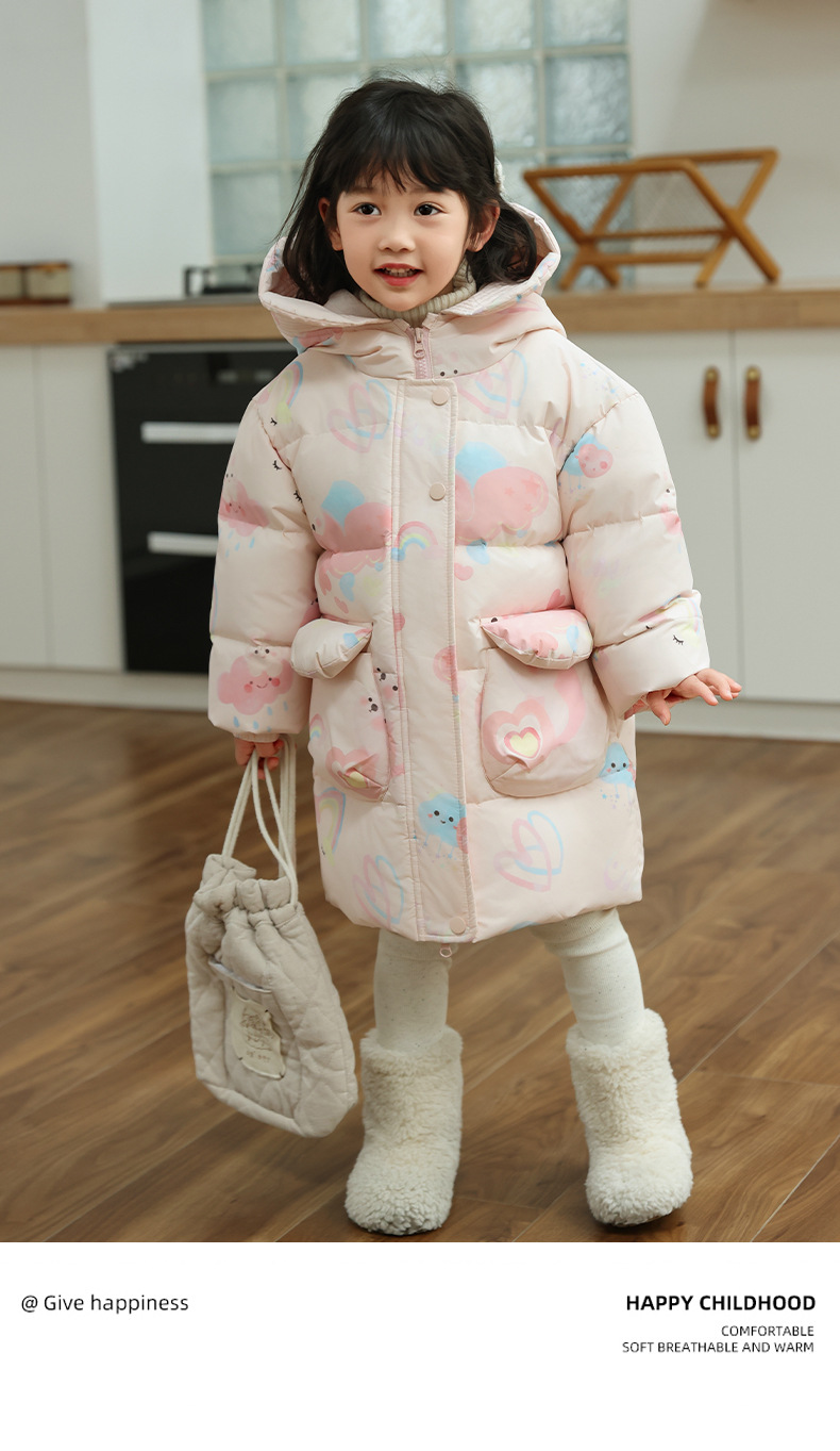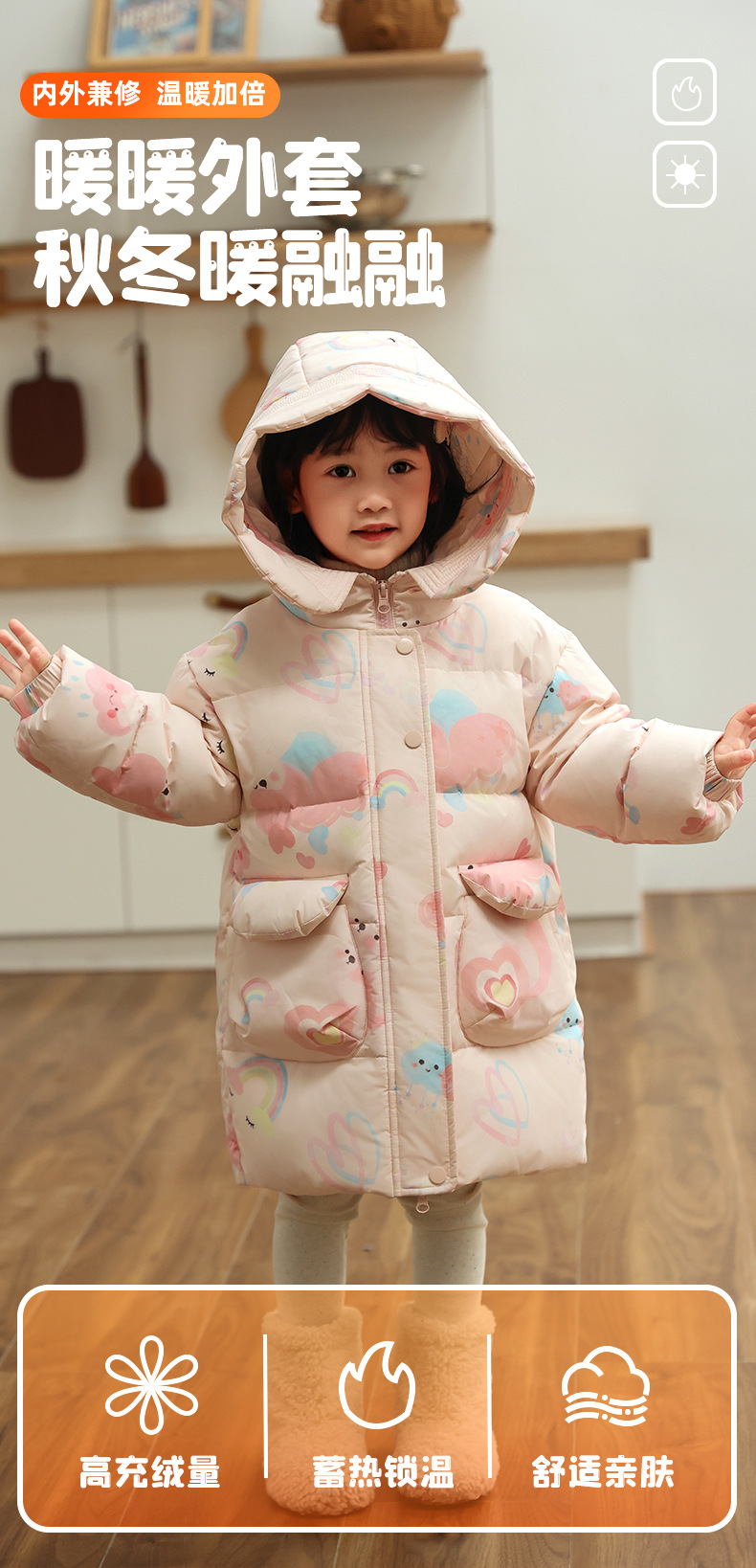 ABC中小童女童羽绒服中长款儿童女宝宝卡通可爱免洗加厚公主外套