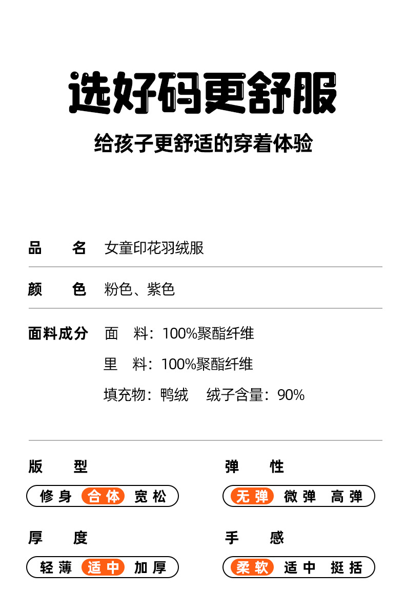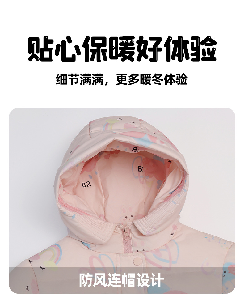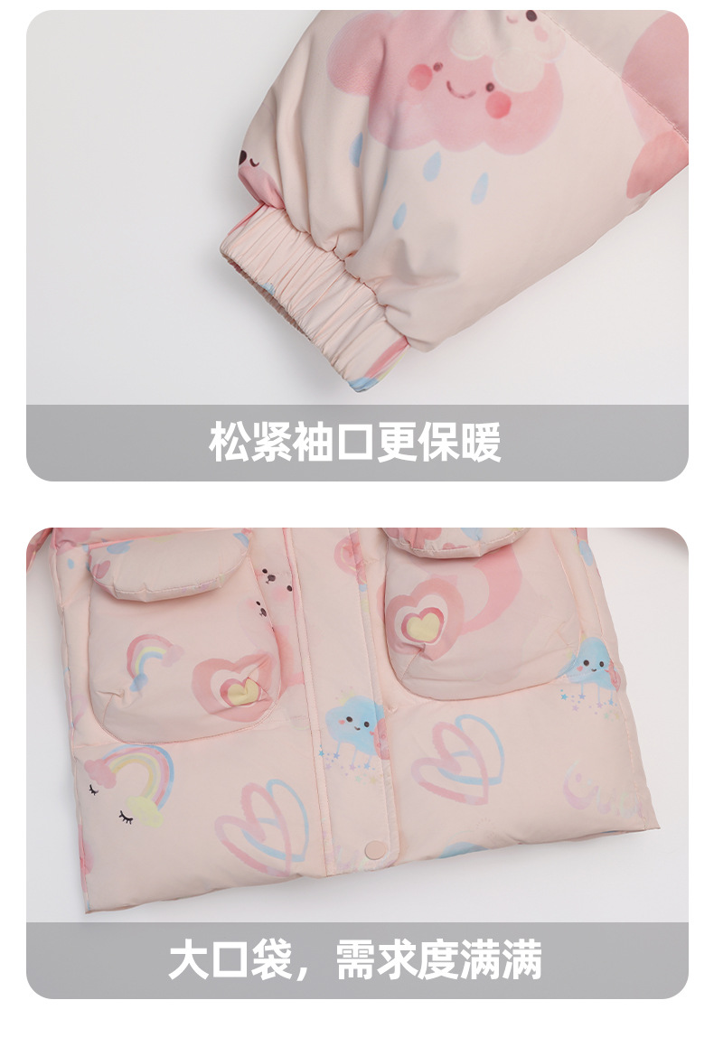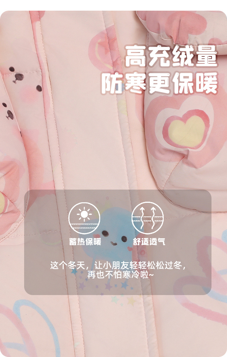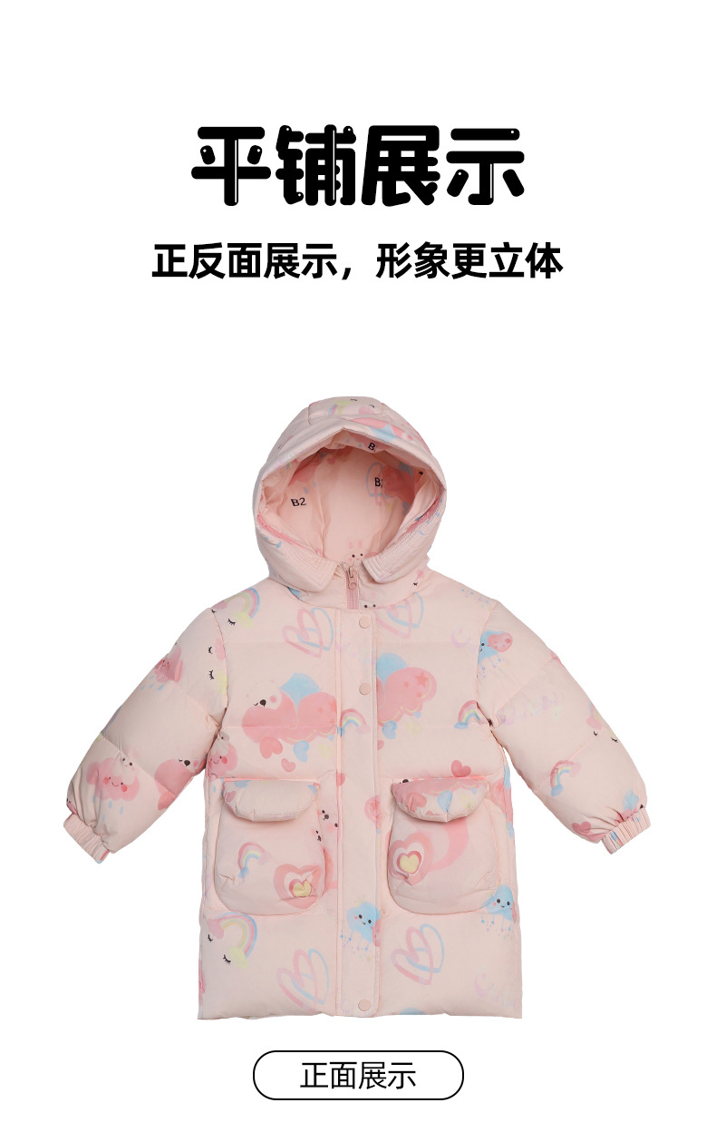 ABC中小童女童羽绒服中长款儿童女宝宝卡通可爱免洗加厚公主外套