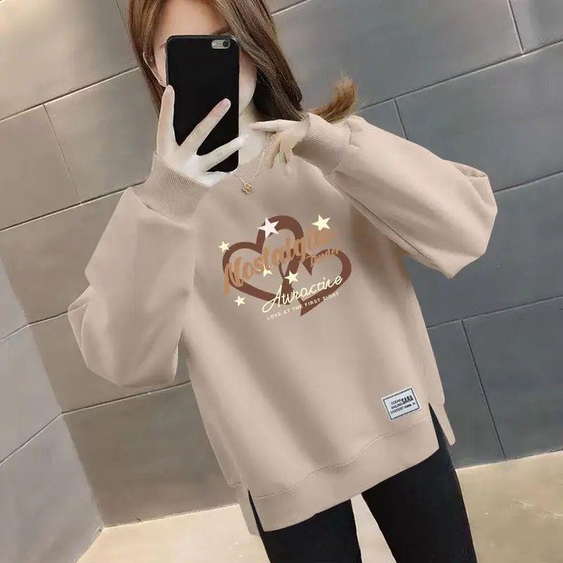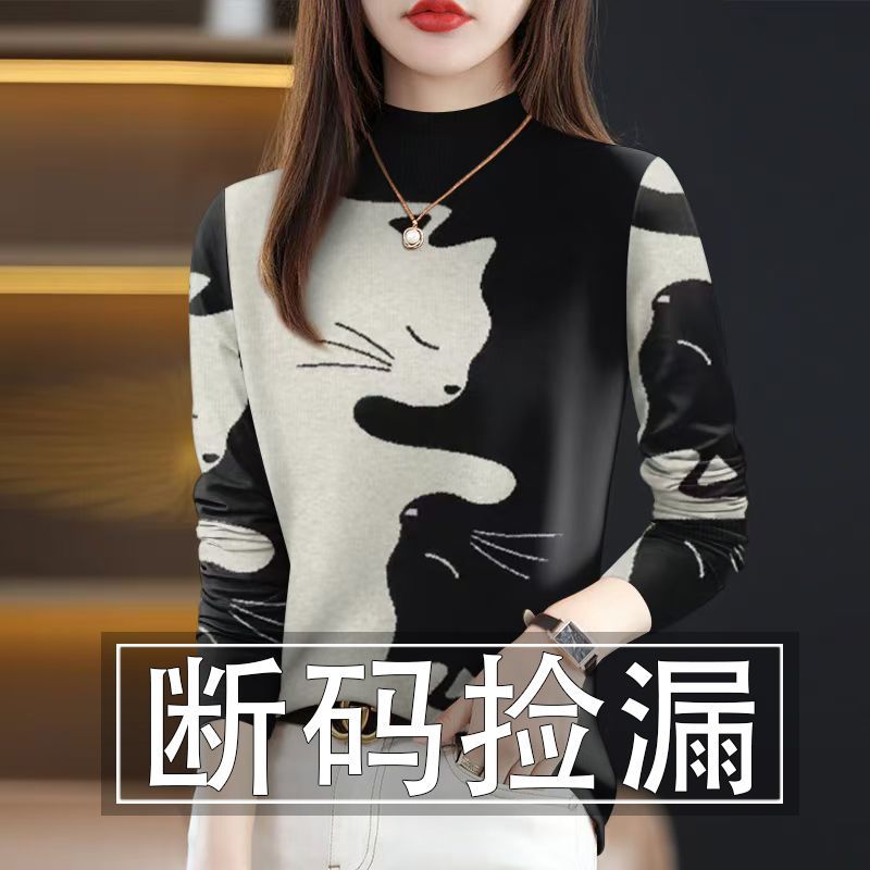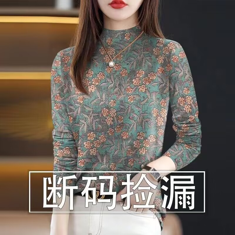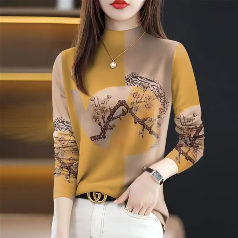 外国貿易の年齢を減らす母は長袖の半高襟の底のシャツの高級なプリントを厚くして腹のtシャツの上着を覆います。