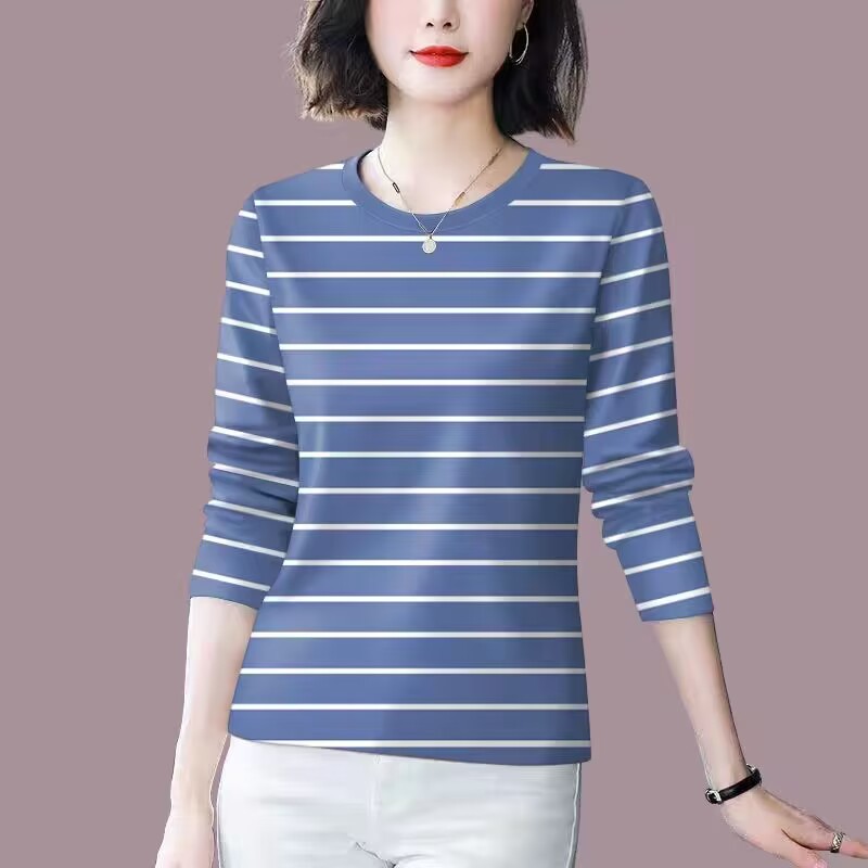 清倉は外国貿易のお母さんの中高年のファッションのストライプの底のシャツを拾って年齢の長袖を減らして腹のtシャツの女性の上着の潮を覆います。