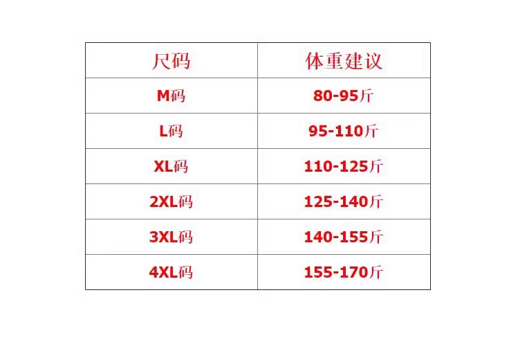 サイズ Sは80以内を推奨,M は 40-47.5kg をお勧めします,L は 47.5-55kg をお勧めします,XL は 55-62.5kg をお勧めします,2XL 推奨 62.5-70kg,3XL 推奨 70-77.5kg,4XL 推奨 77.5-85kg
