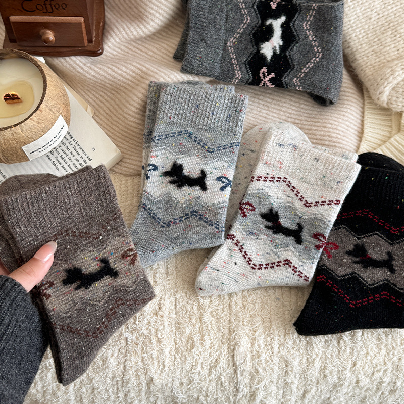 费尔岛中筒袜子女秋冬季加厚保暖针织袜秋季百搭女士堆堆袜批发