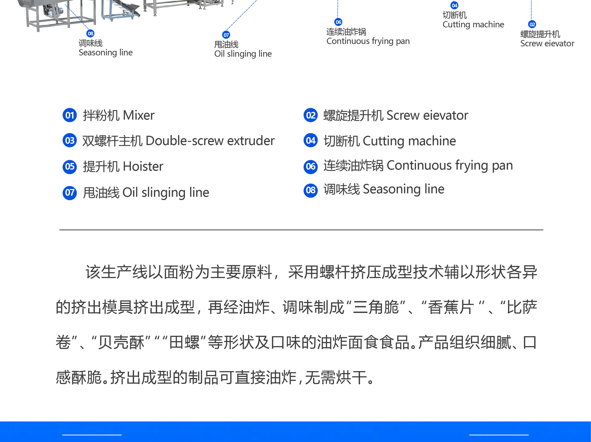 二軸スクリュー式ポテトチップス加工ラインメーカー 膨化食品加工設備 ポテトチップス製造ライン