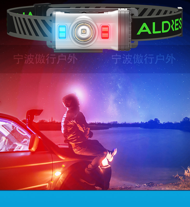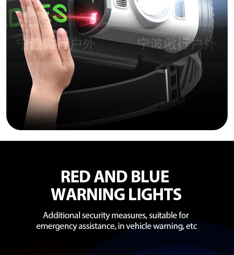 ミニ新型多機能強光長航続ヘッドライト屋外帽子ランプ赤色警告灯付き夜釣りヘッドセット