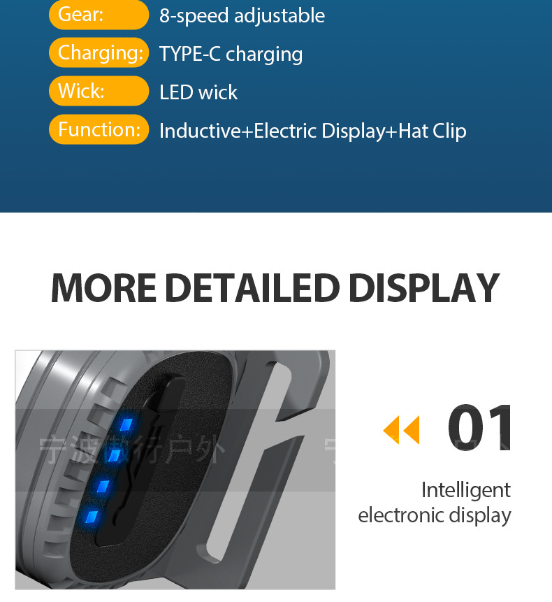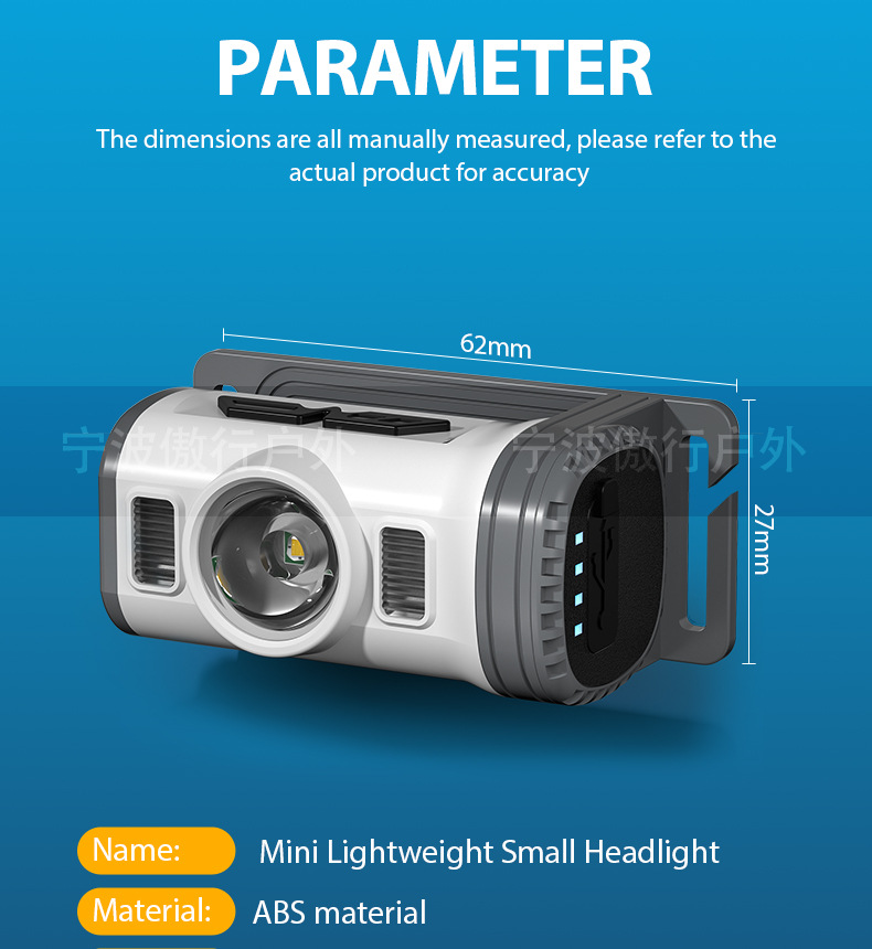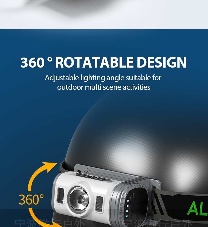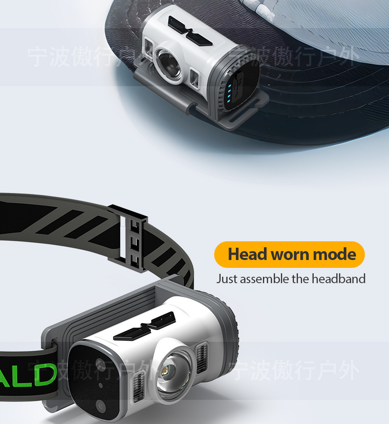 户外头灯长续航锂电头戴式头灯强光高流明感应骑行充电钓鱼夹帽灯
