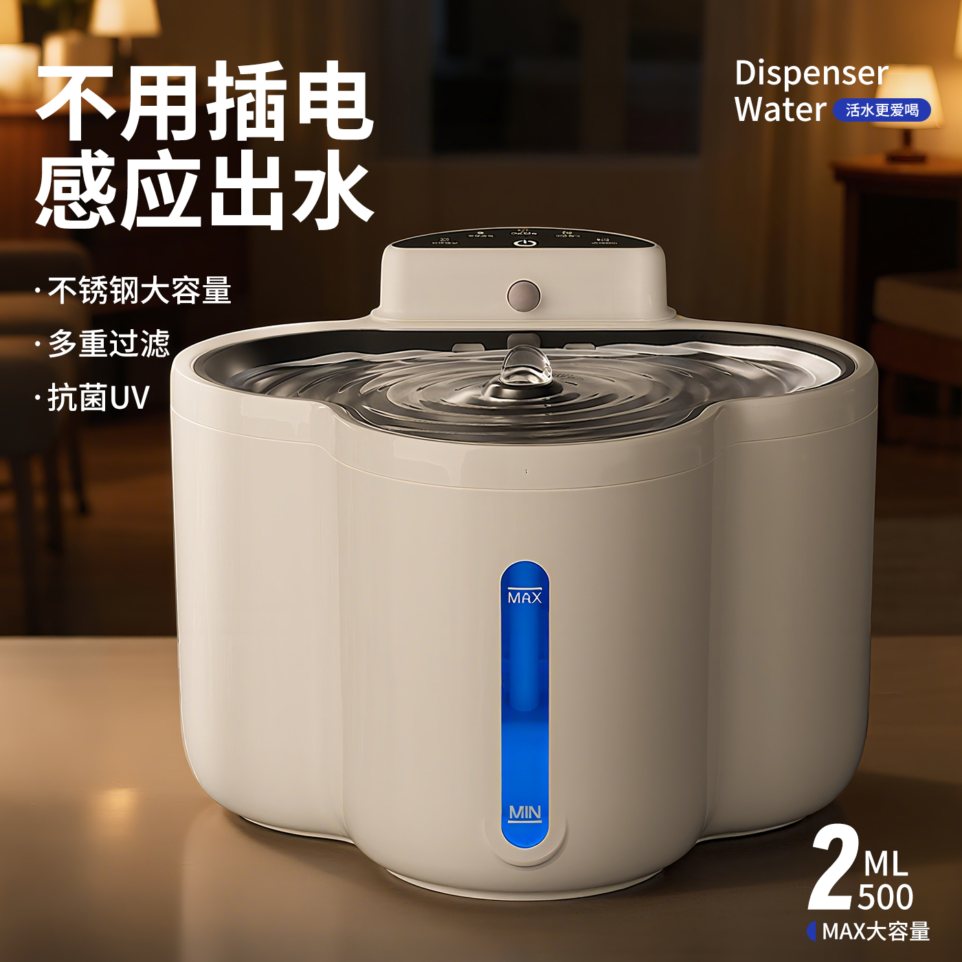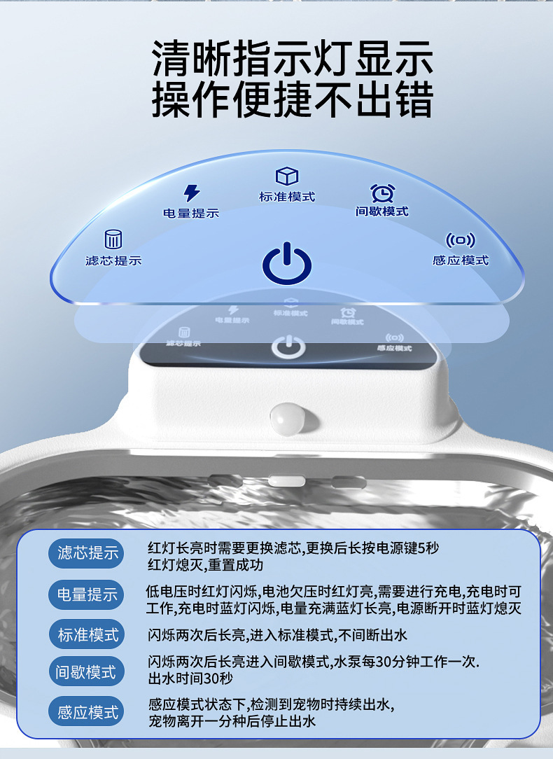 猫の浄水器は電気を入れないで無線でペットの知能を感知します。