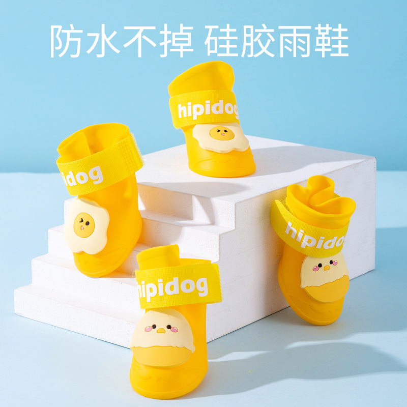 漫画エッグワッズ犬屋外防水レインブーツ屋外防汚フットカバーシリコンシューズ耐摩耗性滑り止めペットシューズ