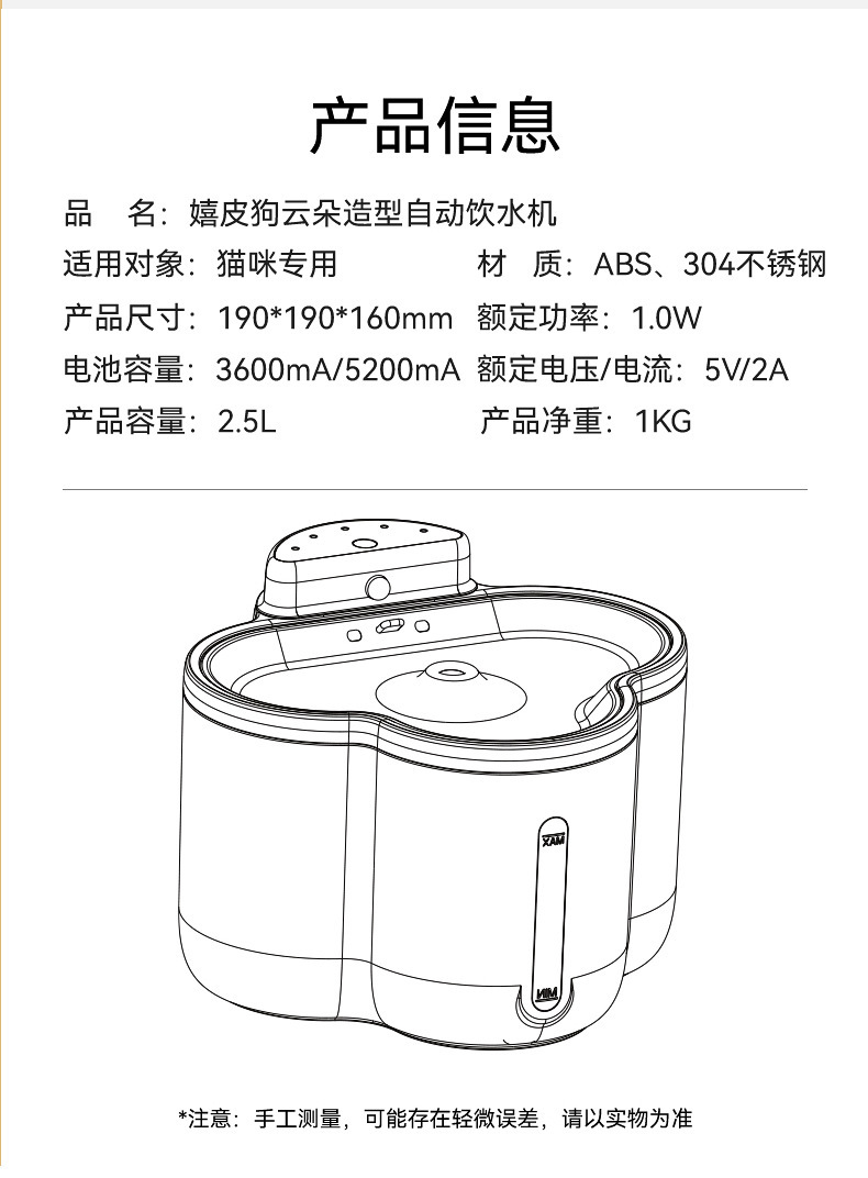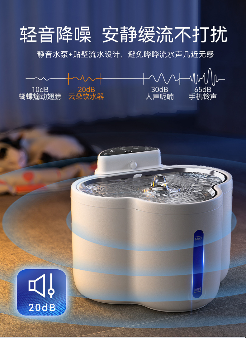 宠物饮水机插电自动感应智能猫狗饮水器创意云朵形无线感应喝水碗