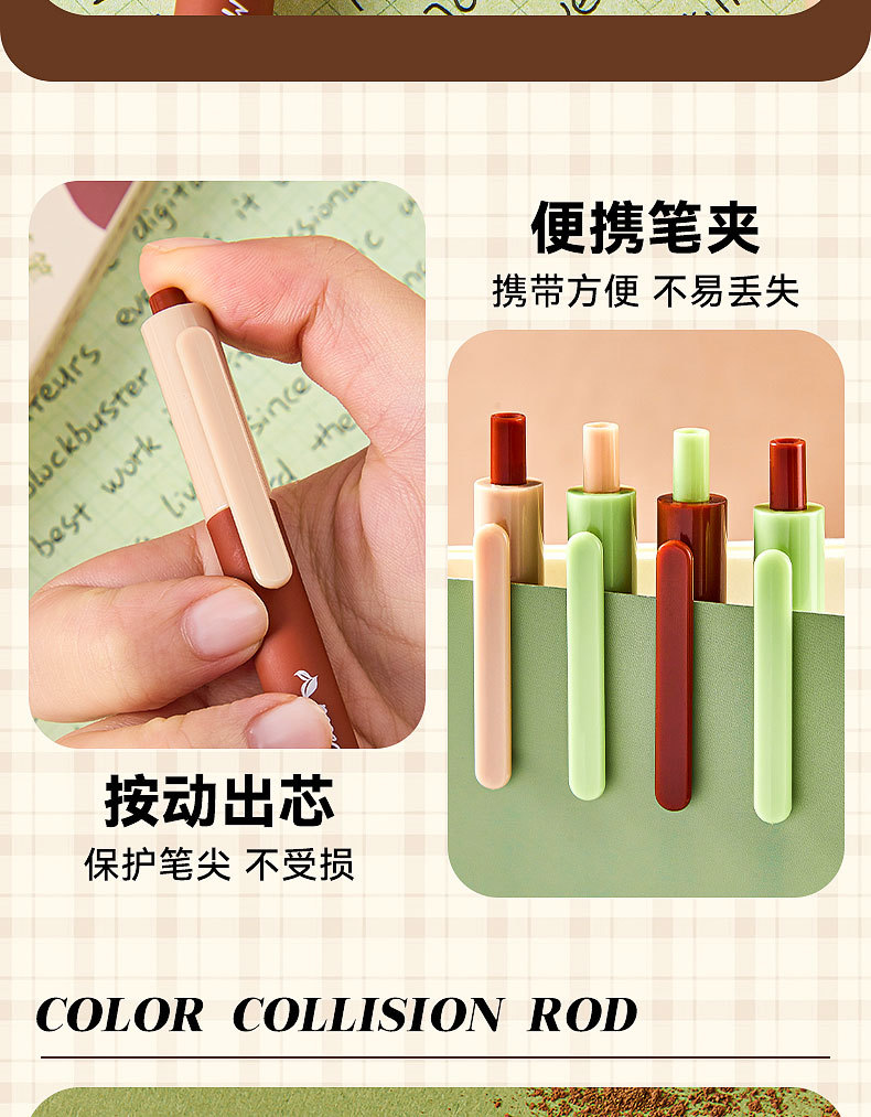 カラーモランディ色中性ペン押し式モランディ系カラーペン学生用ins日系高颜値ペン