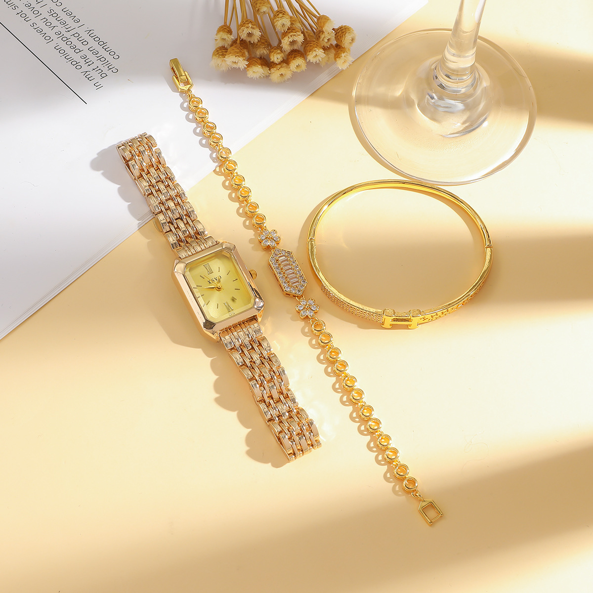 2025外国貿易の新型鋼帯の女性の腕時計の女子学生のファッションの簡単な四角形の石英の腕時計のドリルのブレスレット