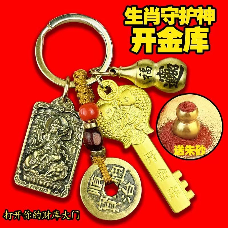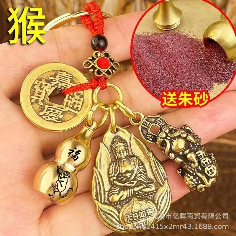 黄銅龍年開金庫キーホルダー十二生肖男女本命仏五帝銭キーホルダーペンダント小プレゼント