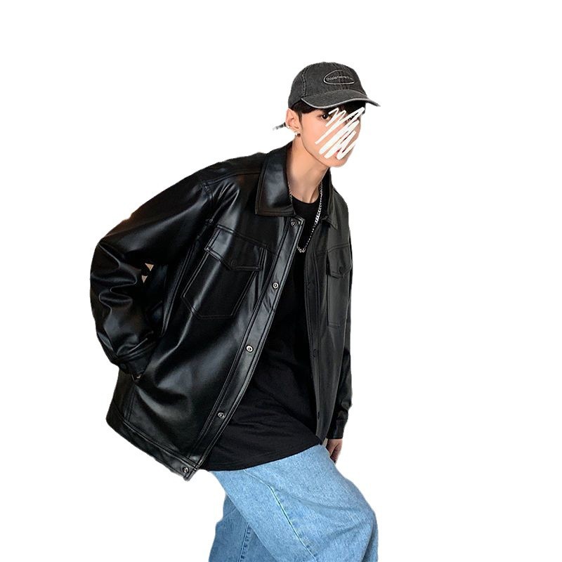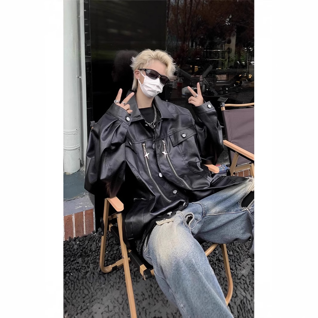 機関車風革ジャケット男ins港風高級感ゆるい皮服秋潮牌ヒップホップ高街コート