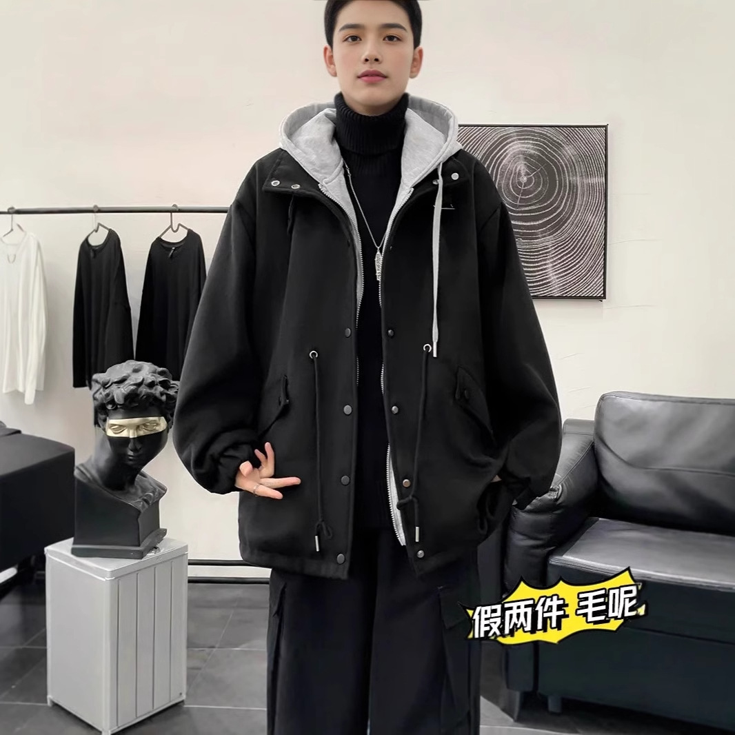 デニムのコートの男性の秋の復古のごろつきのハンサムな服装のカジュアルなジャケットのinsのファッションのブランドの青少年の百合の襟の上着