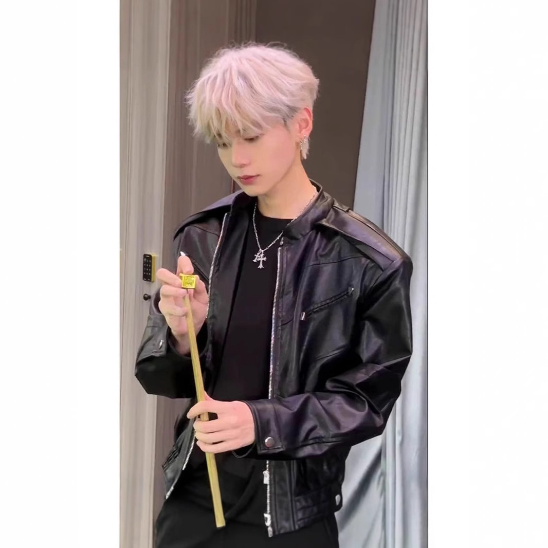 2024春季男士机车皮衣秋款外套韩版修身潮流帅气青年休闲PU皮上衣