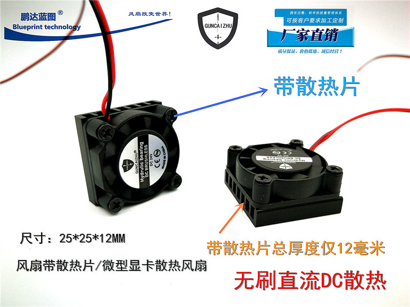 新しい2507ヒートシンク付きアルミシート25*12mmマイクロ2.5cmノート12v 5vビデオカード放熱ファン