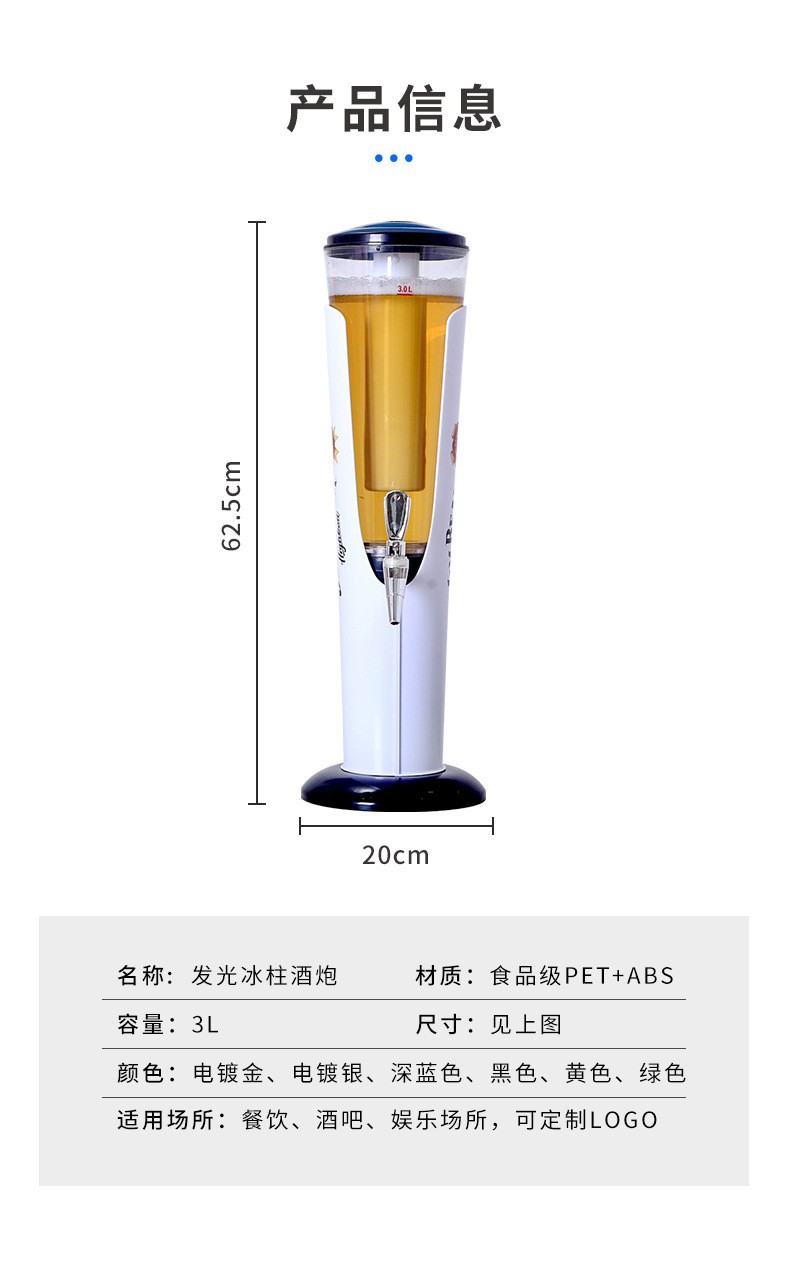 商業サービス設備ビール分配器3リットル精醸造ビール砲七彩冷飲ジュースビール塔分酒器