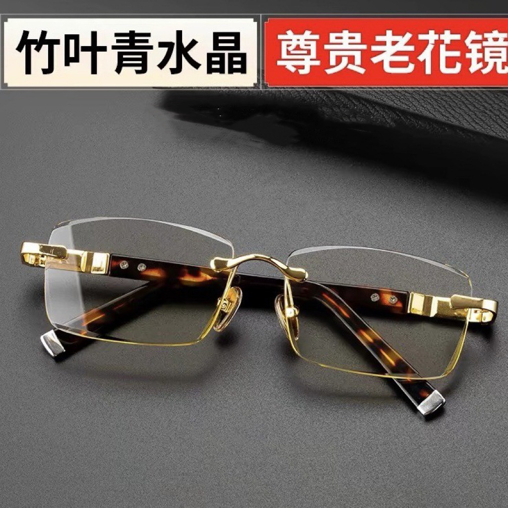 竹葉青老花眼鏡男無枠高級水晶高清遠視鏡女防青光抗疲労保護眼養