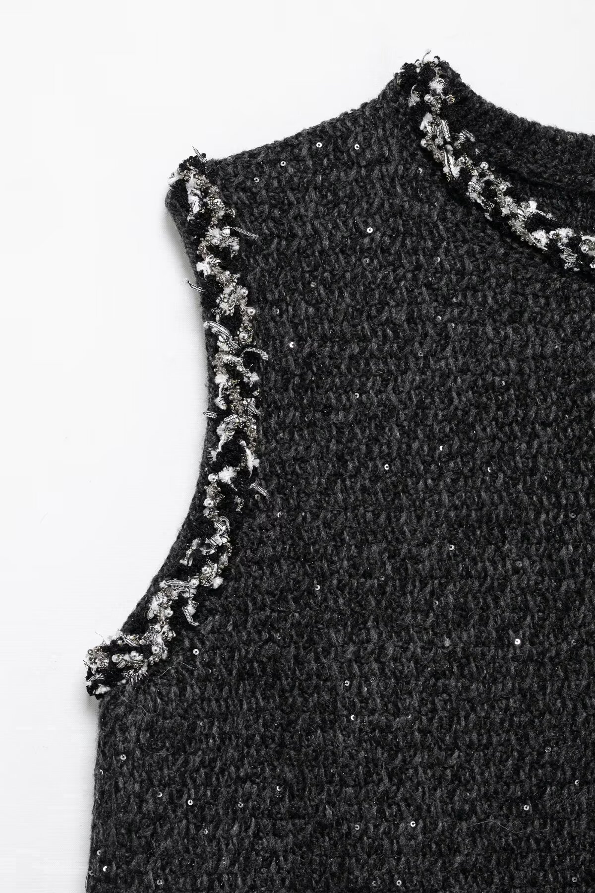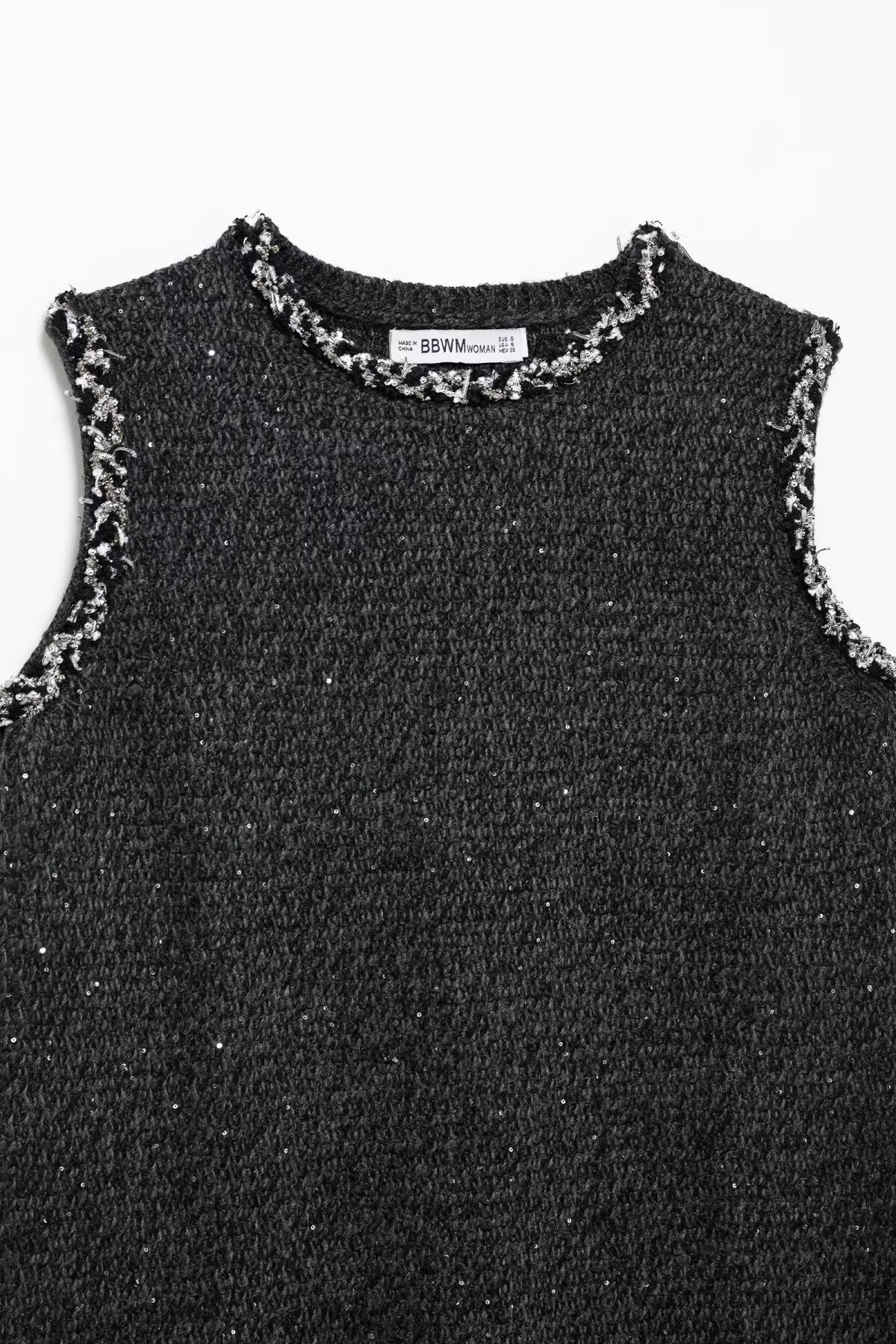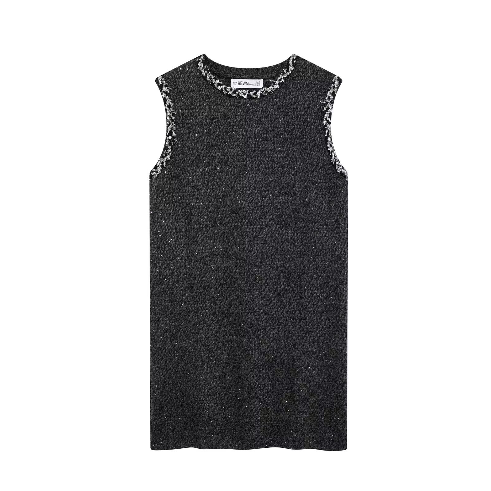 アマゾンの国境を越えた対外貿易欧米の女装2024秋冬の新しいファッションの丸首の玉の飾りはニットのワンピースを持ちます。