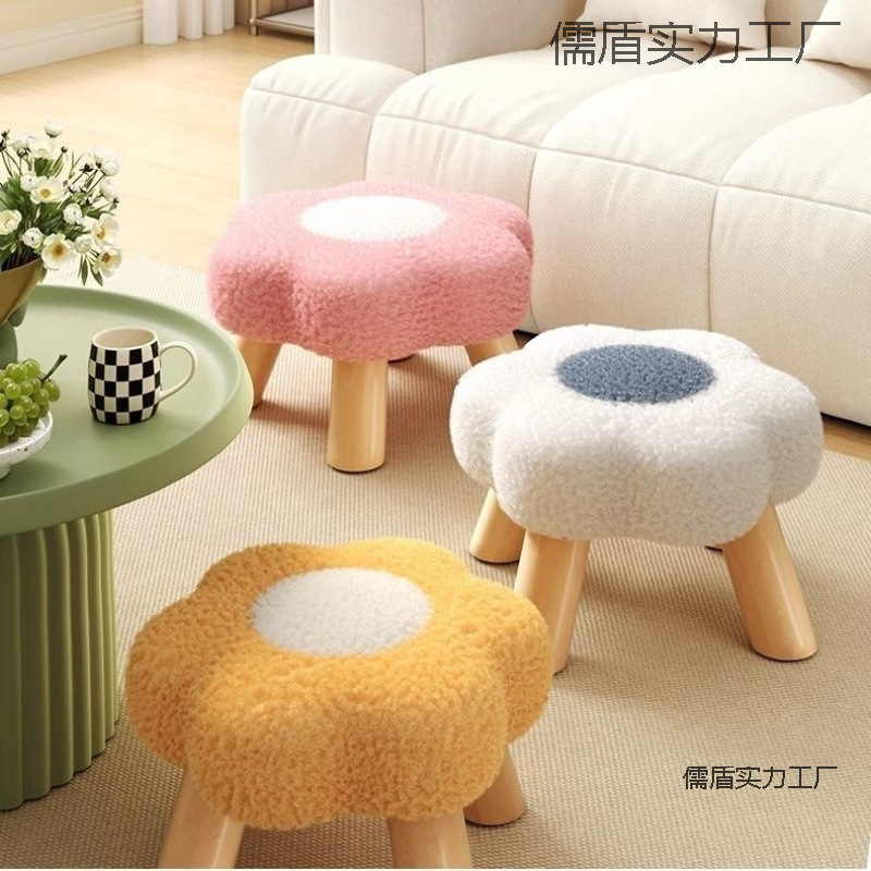新しい小さなスツールフラワープリンセススタイルの低いスツールスーパーソフトクラウドスツールホーム子供用スツールかわいいぬいぐるみ靴交換スツール