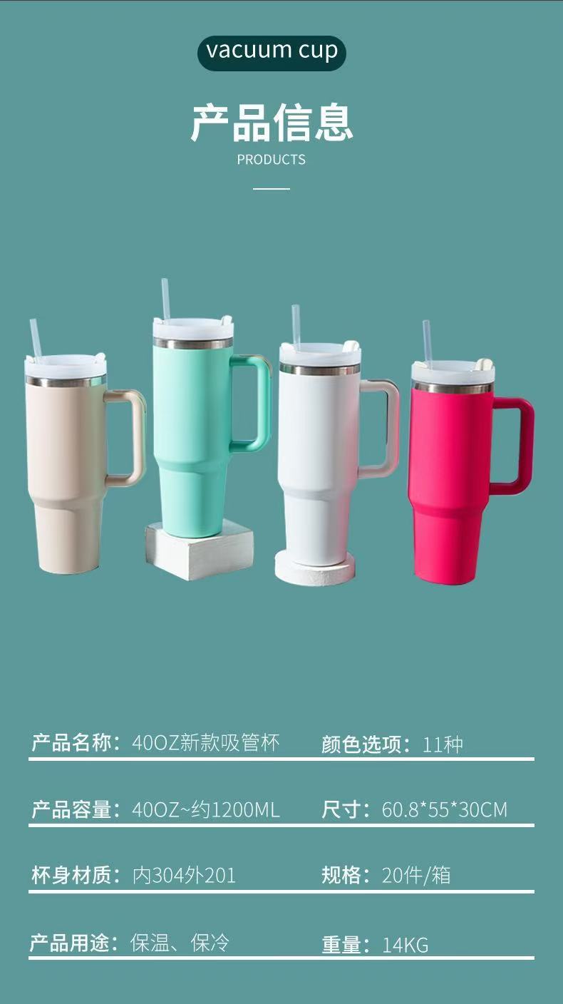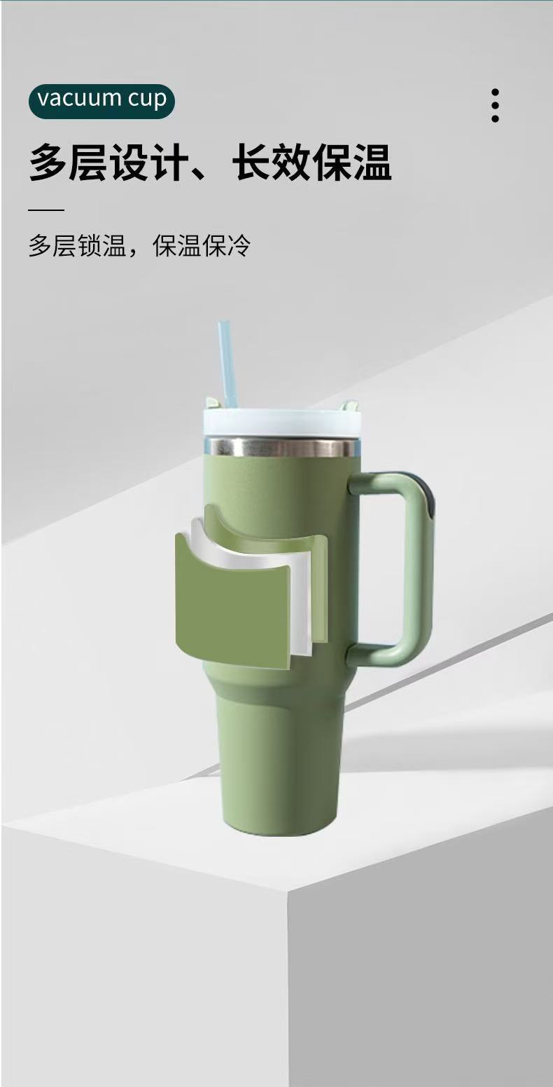 クロスボーダー40オンス自動車カップ大容量ステンレス保温カップ携帯ハンドルストローコーヒーカップ保冷アイスカップ