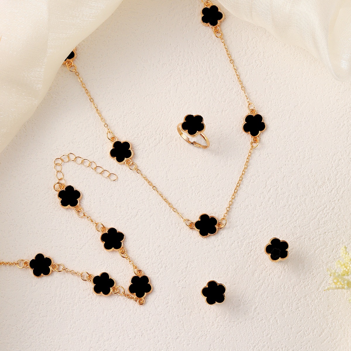 CDDクロスボーダー熱売幸運五弁花五葉草ピアスネックレス四点セット欧米ファッション五葉花セット