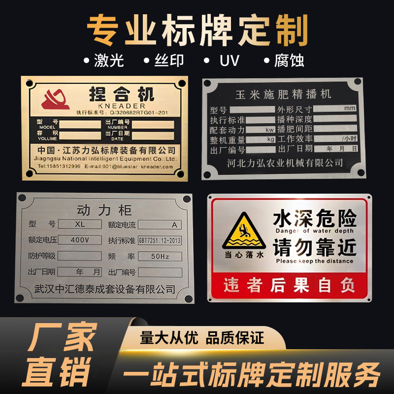 金属銘板カスタム高光糸銘板シルク印刷塗装プレスアルミプレートステンレス機械モータ標識