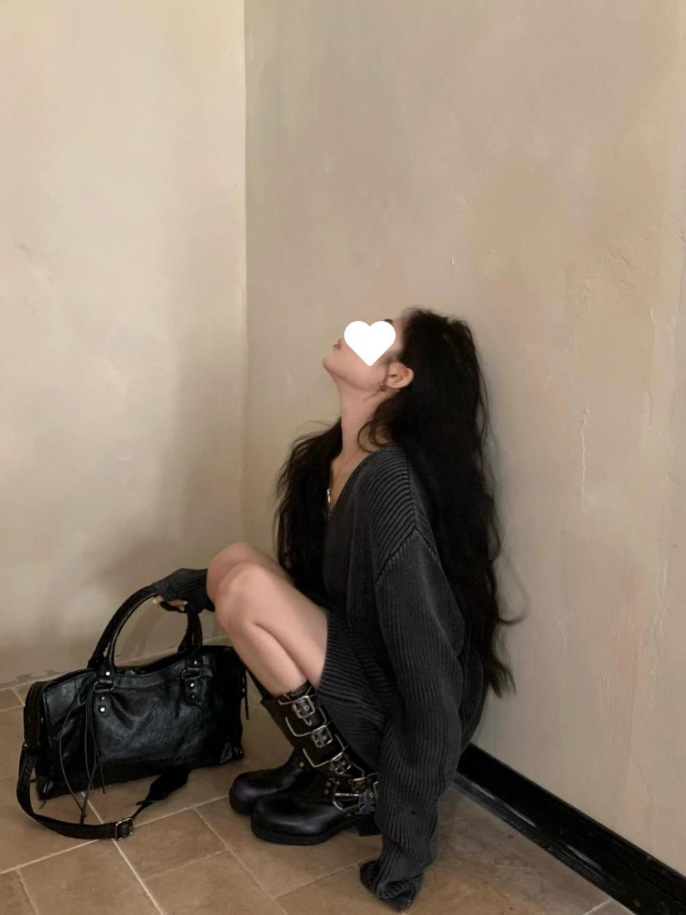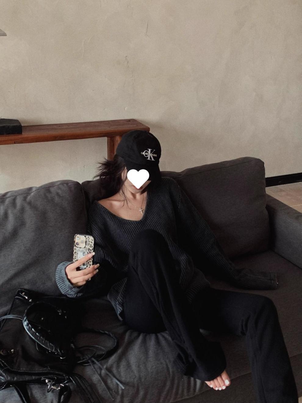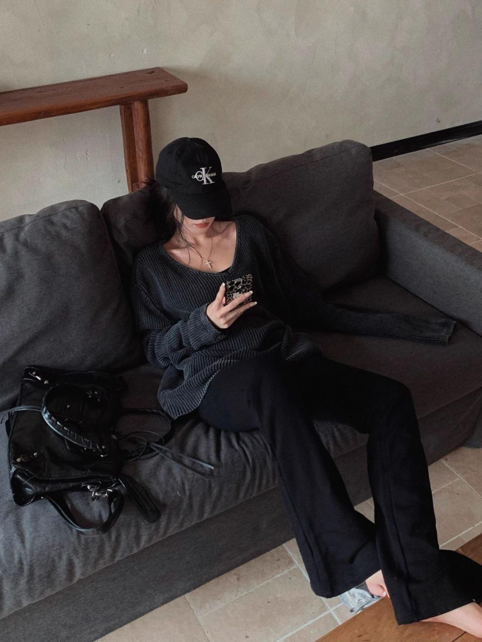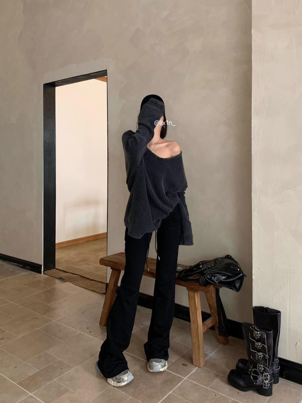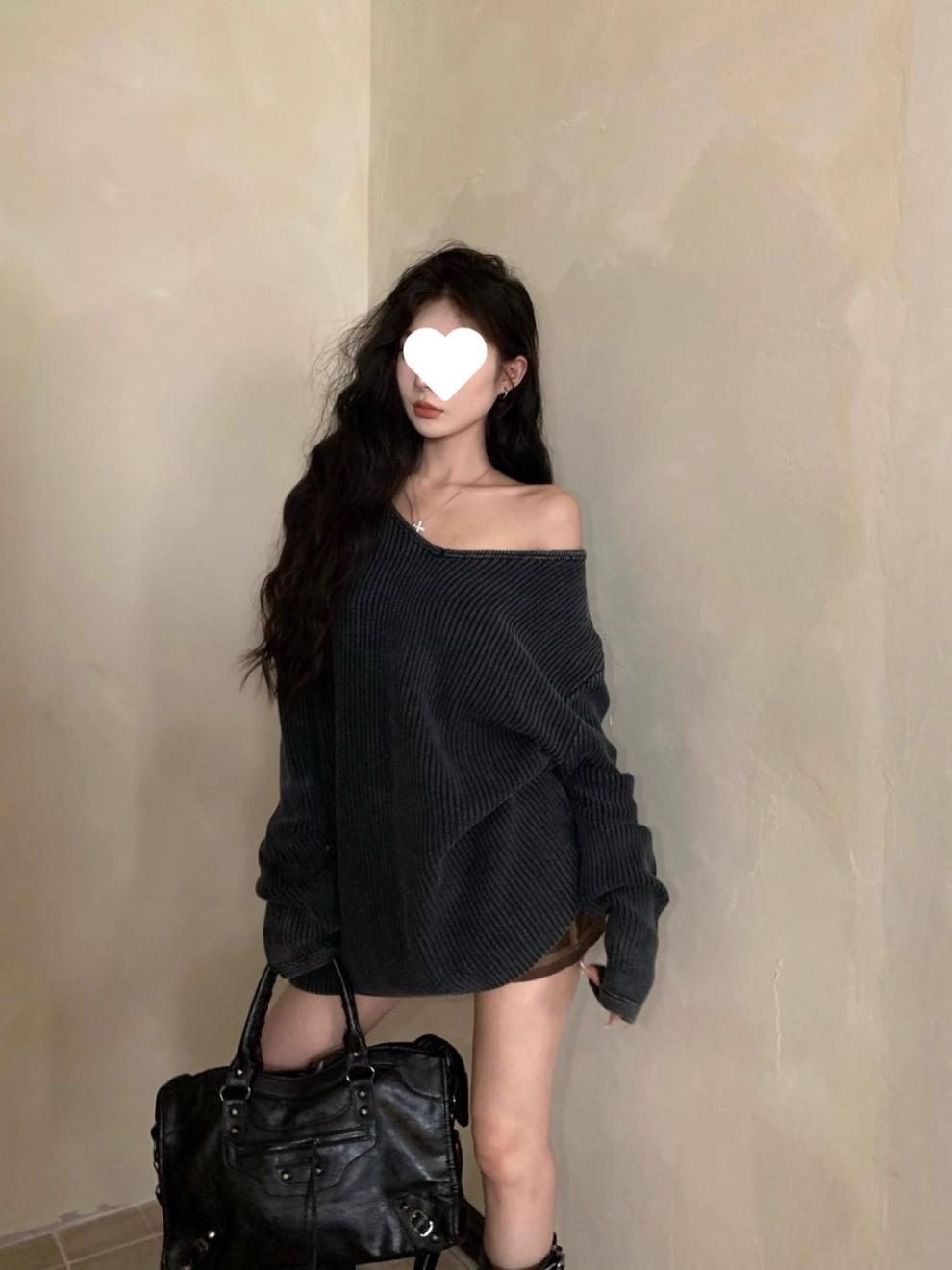 宽松v领黑色毛衣女慵懒风套头针织衫秋冬新款高级感气质ins打底衫