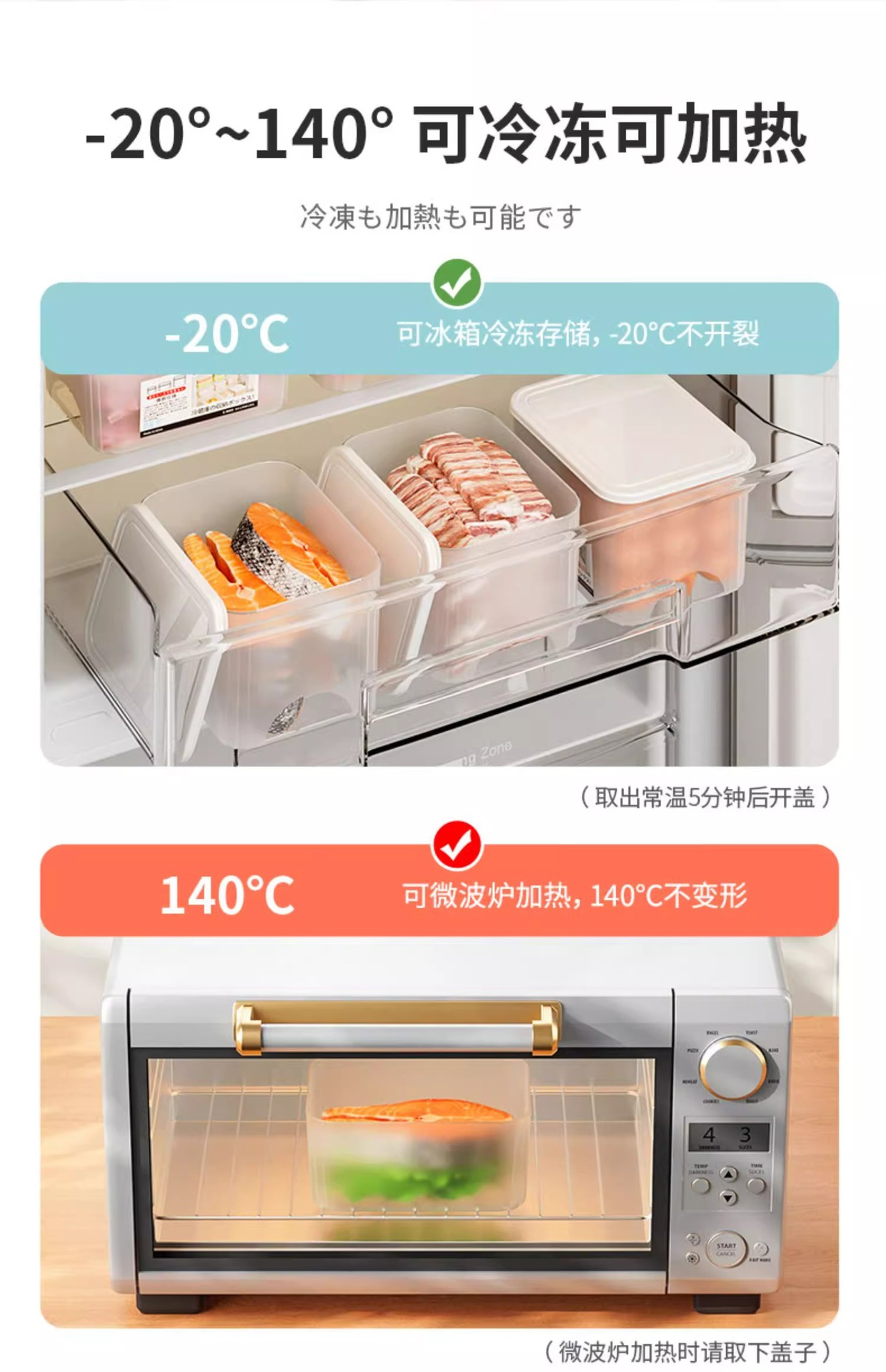 日本式冷蔵庫収納保存箱プラスチック食品級冷凍果物野菜収納ケース電子レンジ弁当箱