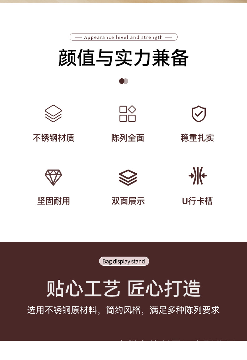 厚みのあるステンレス製バッグハンガー、ディスプレイスタンド、男女兼用バッグ展示スタンド、ハンドバッグハンガー、バッグ店用バッグスタンド、バッグサポート