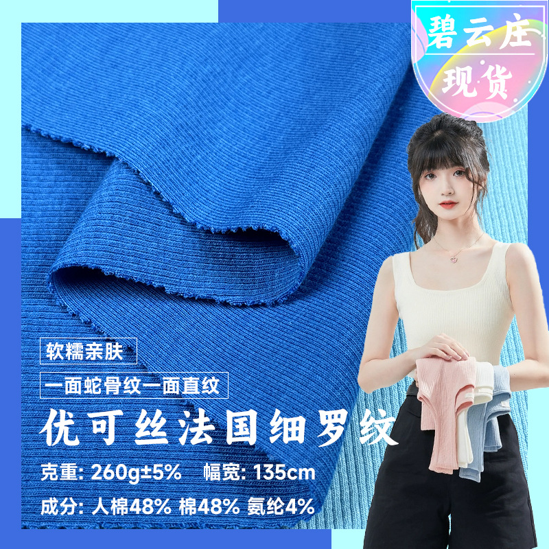 カラー綿2*2リブ生地人綿2*2弾力リブ坑条布ファッションシャツ生地