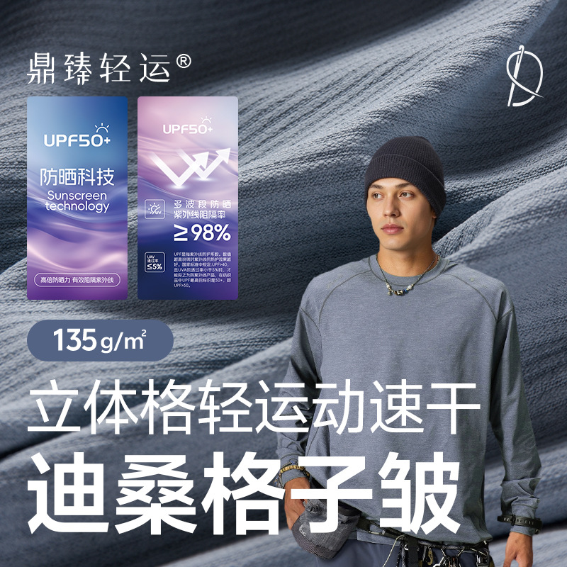 迪桑格子皱135g轻量化聚酯纤维布料爬山骑行服吸湿速干防晒衣面料