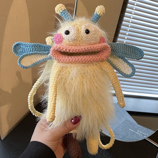 可爱丑萌搞怪大嘴手机包卡通手工针织斜挎包亲子洋气百搭单肩包潮