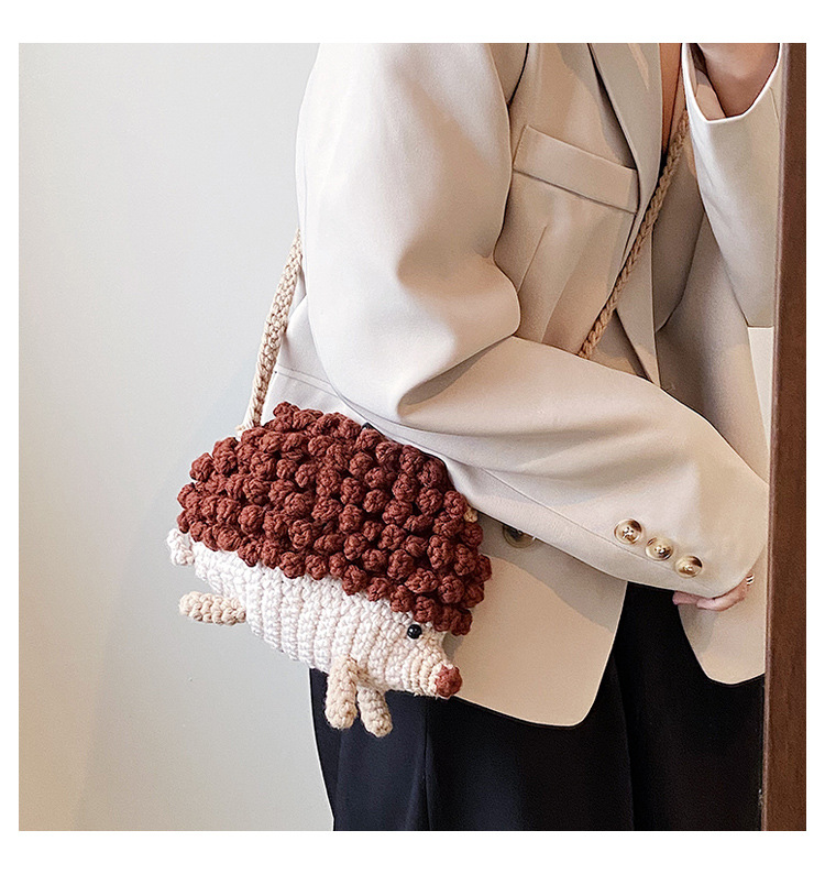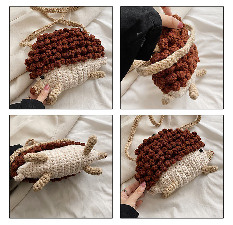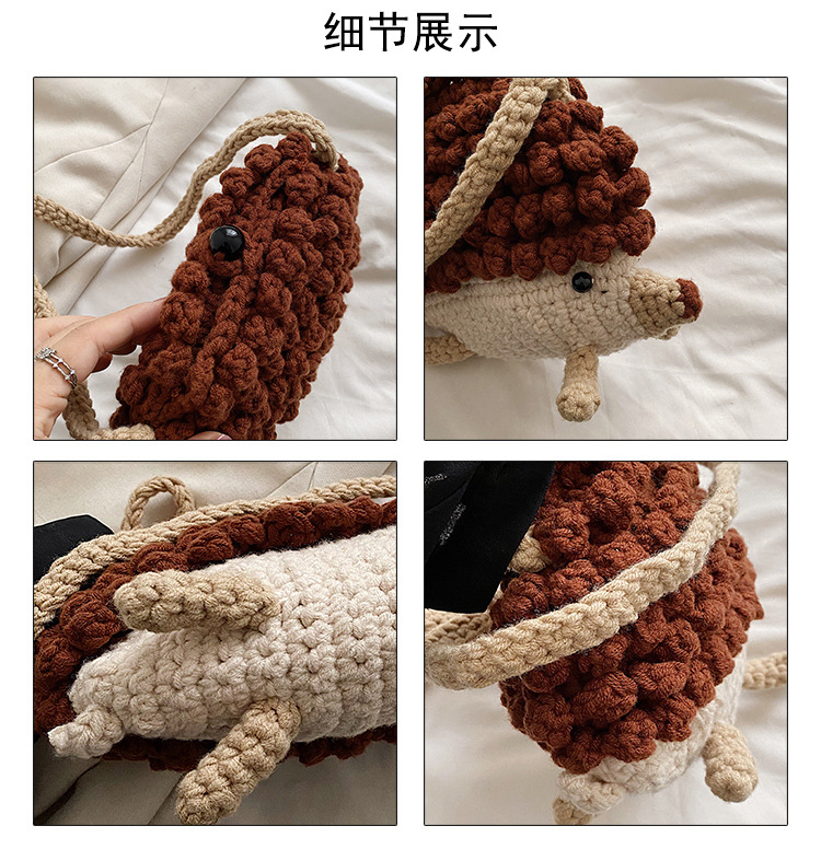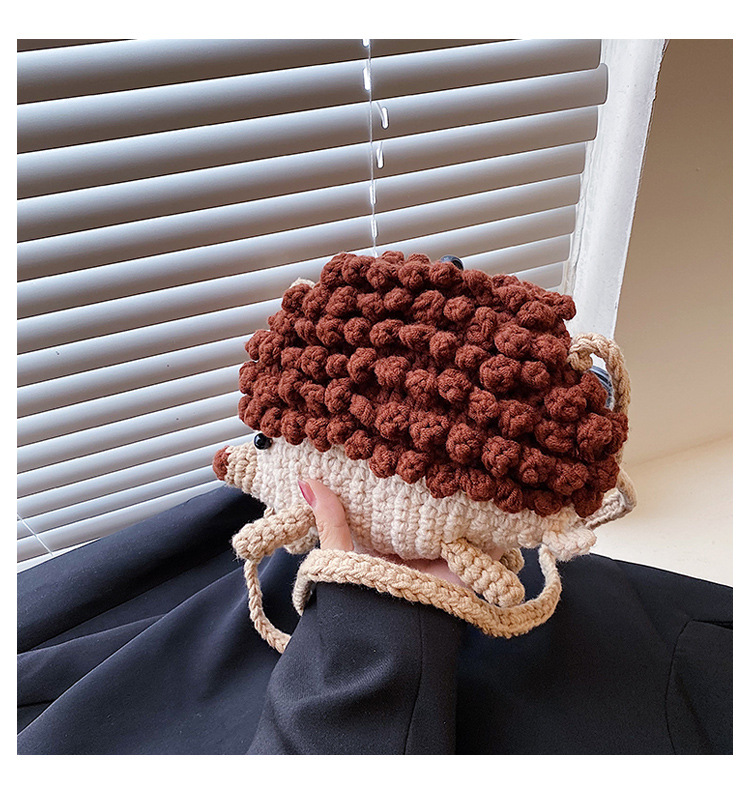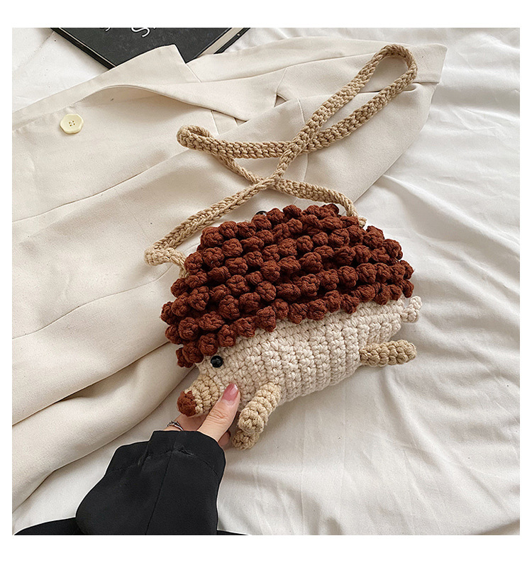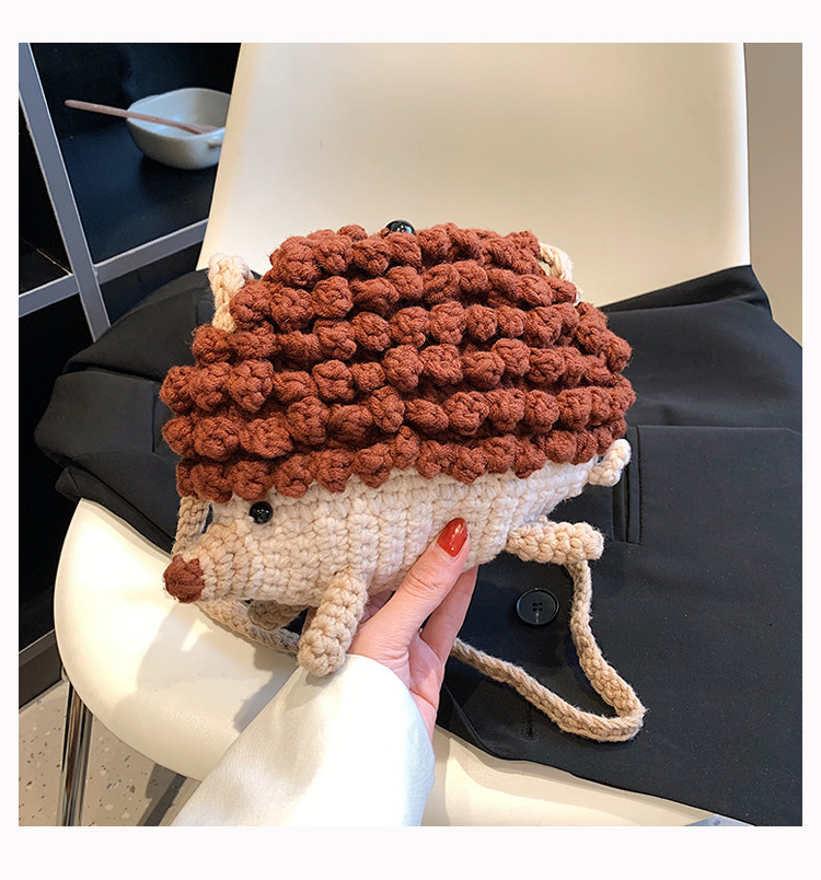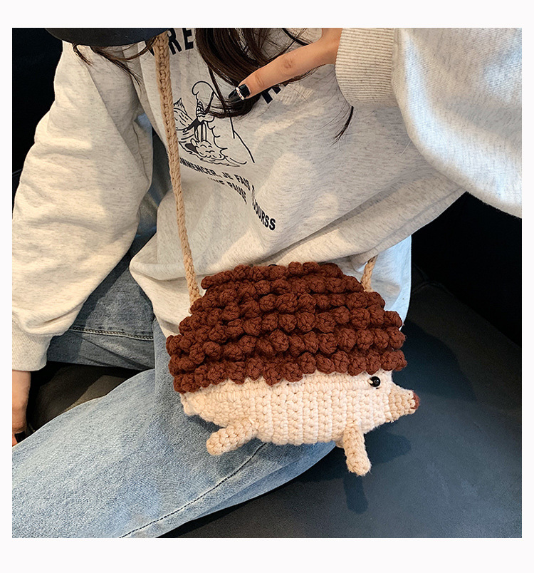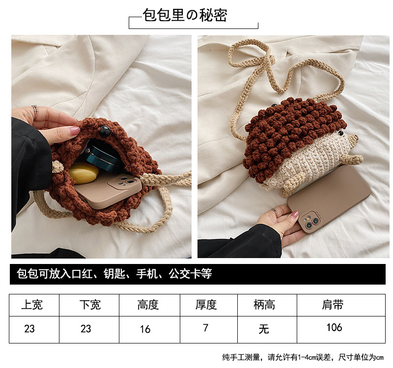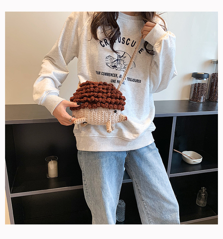 かわいいハリネズミの毛糸は完成品の手作りのかぎ針を編んで個性の斜めなかばんのクロスボーダーの小さい大衆の設計のファッションの女性の携帯電話のカバンを編みます。