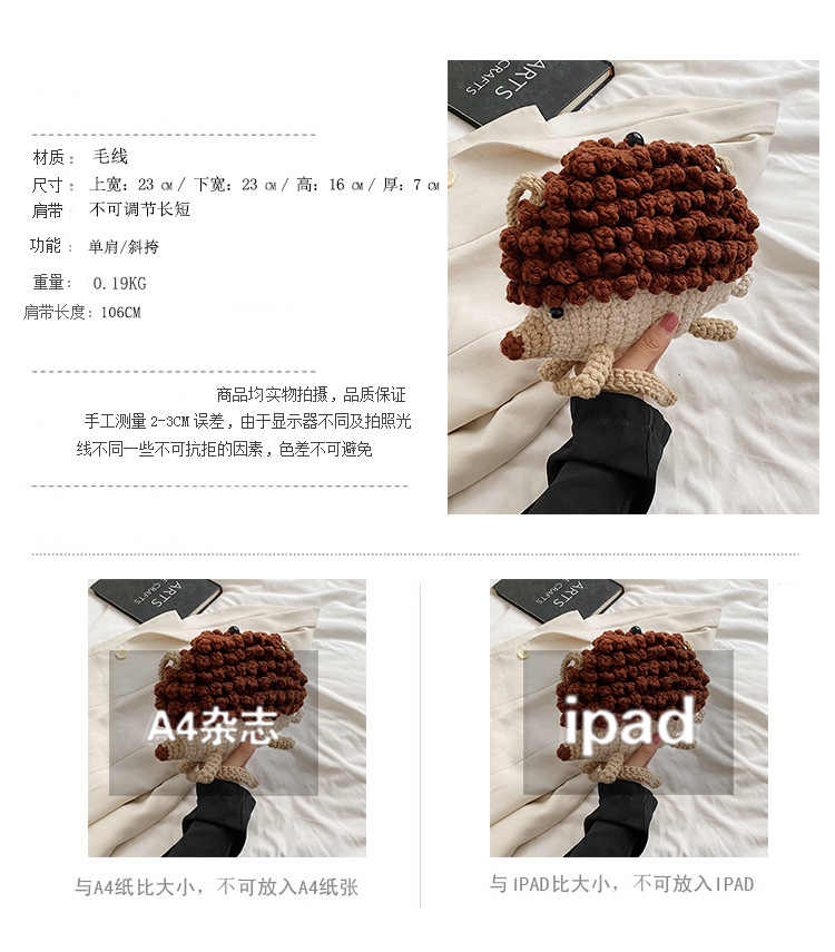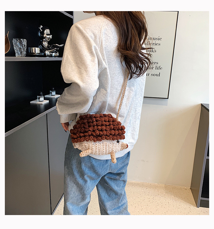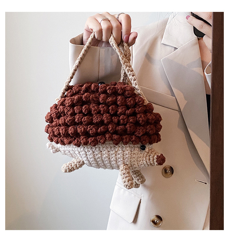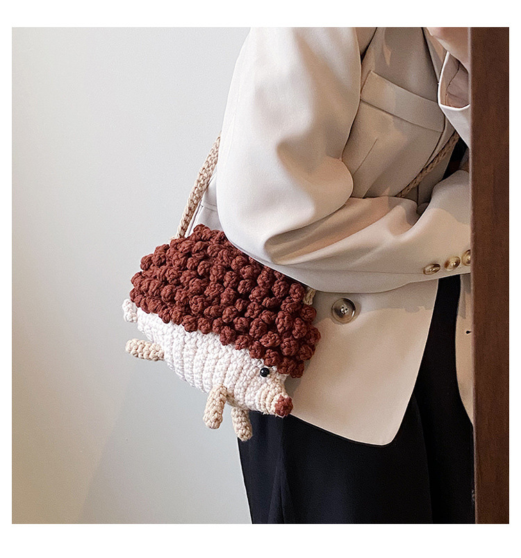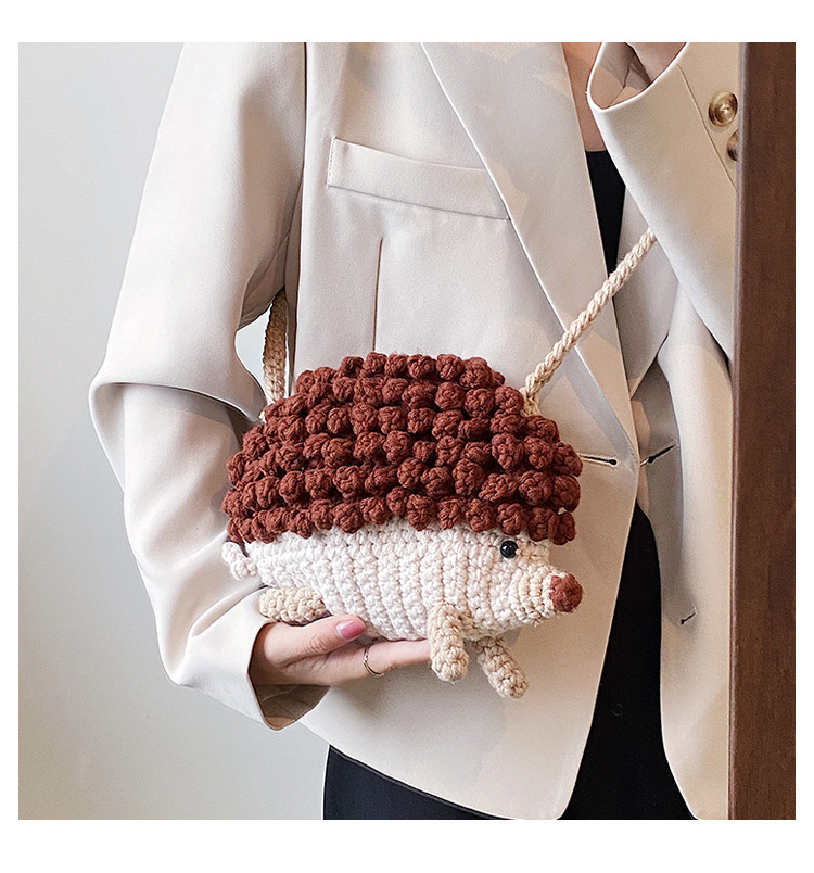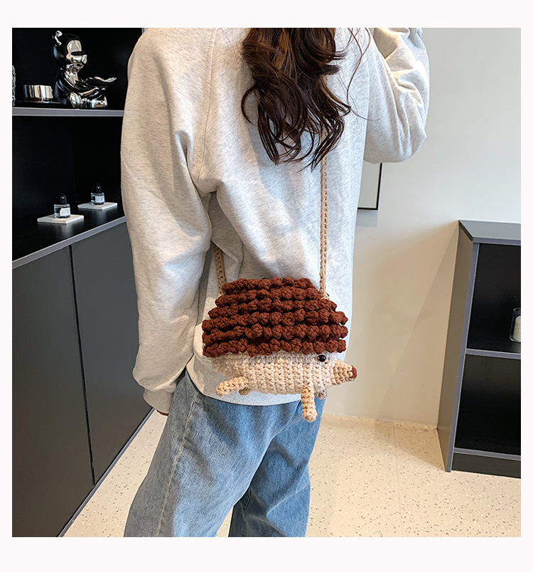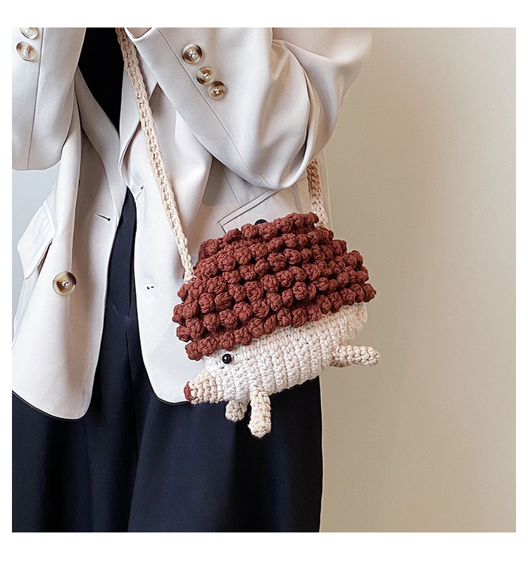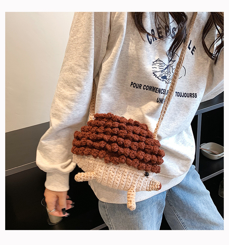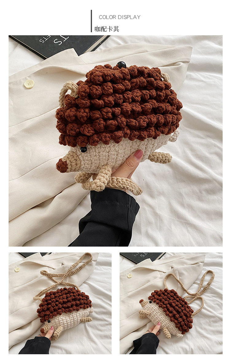 かわいいハリネズミの毛糸は完成品の手作りのかぎ針を編んで個性の斜めなかばんのクロスボーダーの小さい大衆の設計のファッションの女性の携帯電話のカバンを編みます。