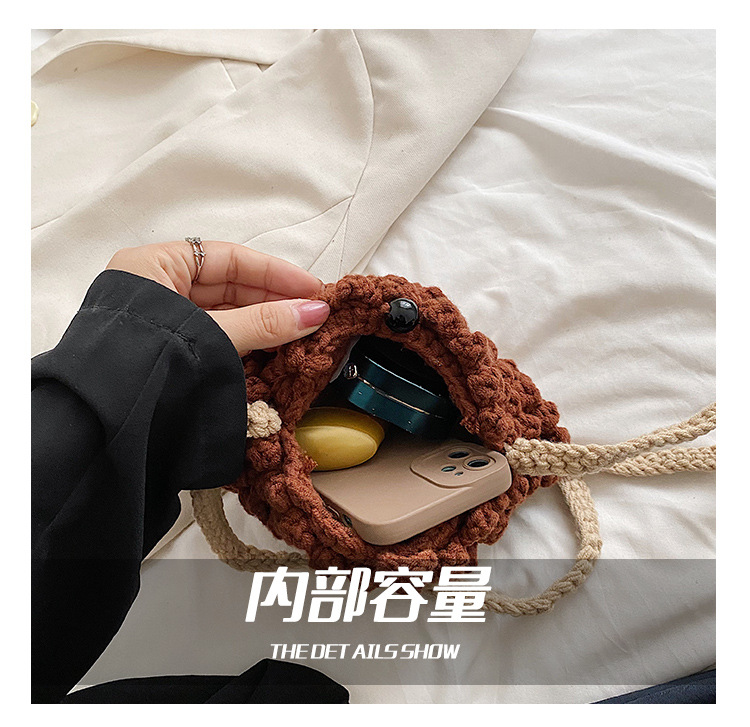 秋冬新作毛糸バッグ手作りかぎ針編みハチミツ缶可愛い小さいかばん網赤蜂レディース斜め掛けショルダーバッグ完成品