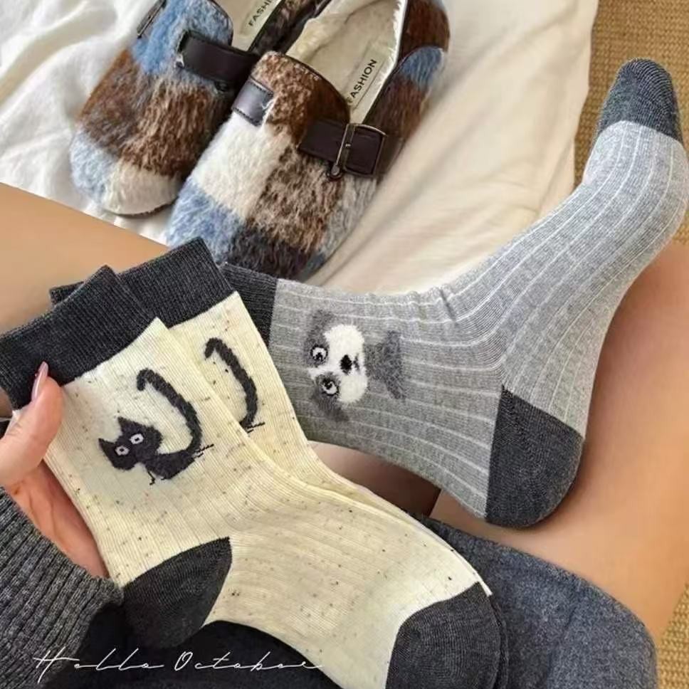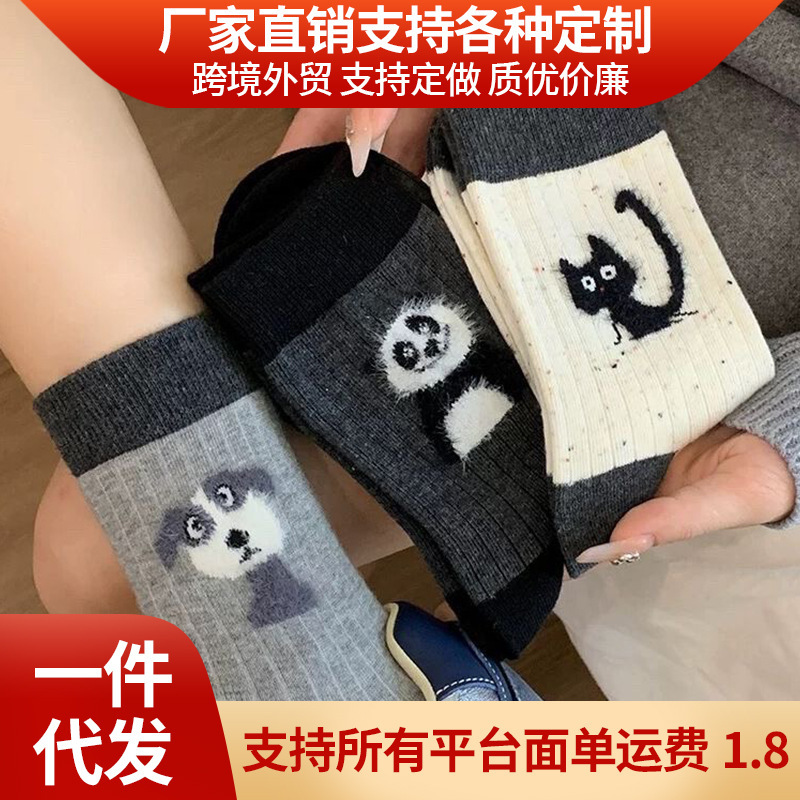 女性用日本製秋冬ソックス、トレンディな日本製ニッチデザイン、女性用の植毛かわいい小動物ミッドカーフソックス